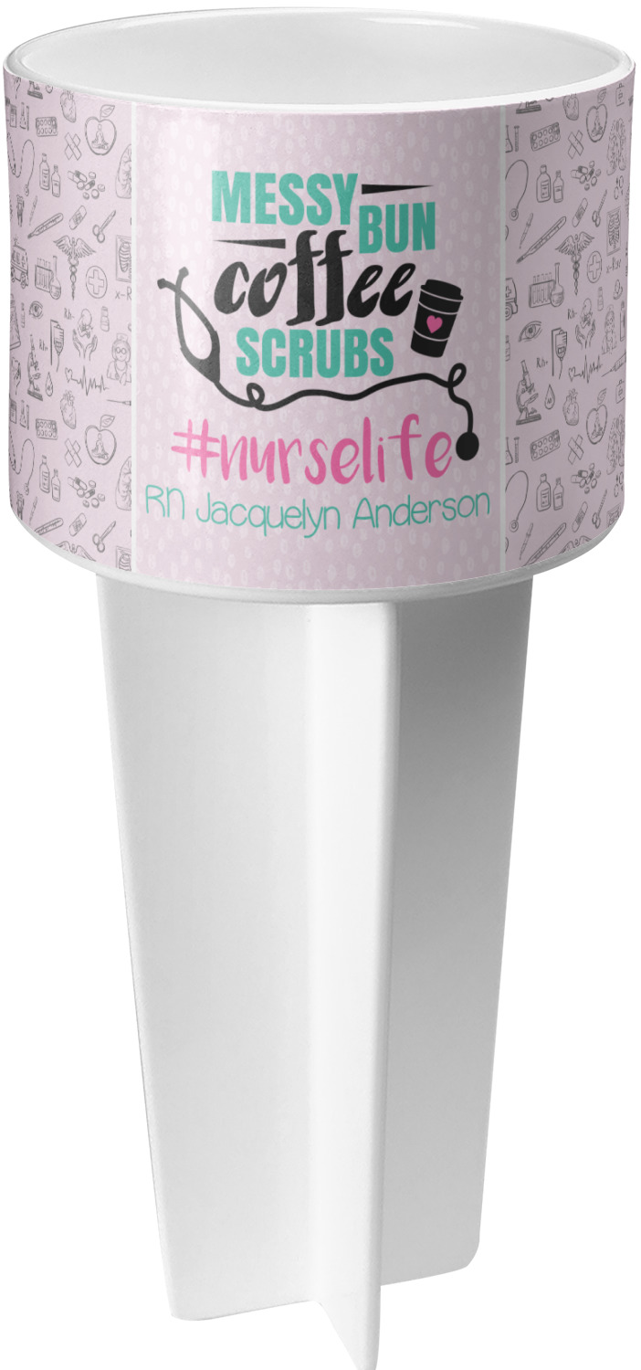 This cup holder has a large stake at its bottom that anchors it to the sand or ground below, while the cup holder rests above the stake. The entire drink holder is made of durable plastic and displays your customization around the cup holder portion. We sell these personalized beach spikers in two different colors: black and white.