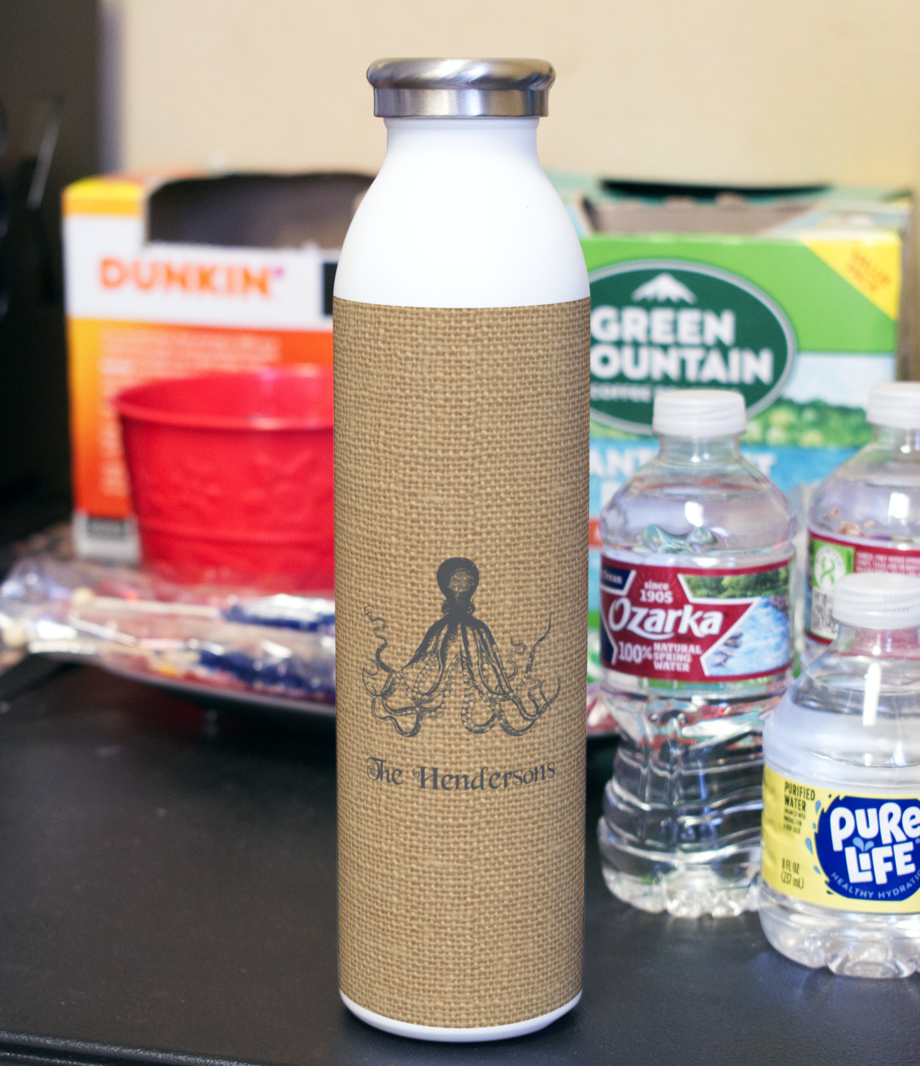 Design your bottle and we will print your design with a UV stable ink so it will not fade over time. After printing the design we apply a clear coat over the print to ensure its durability will stand up to rough every day use.
