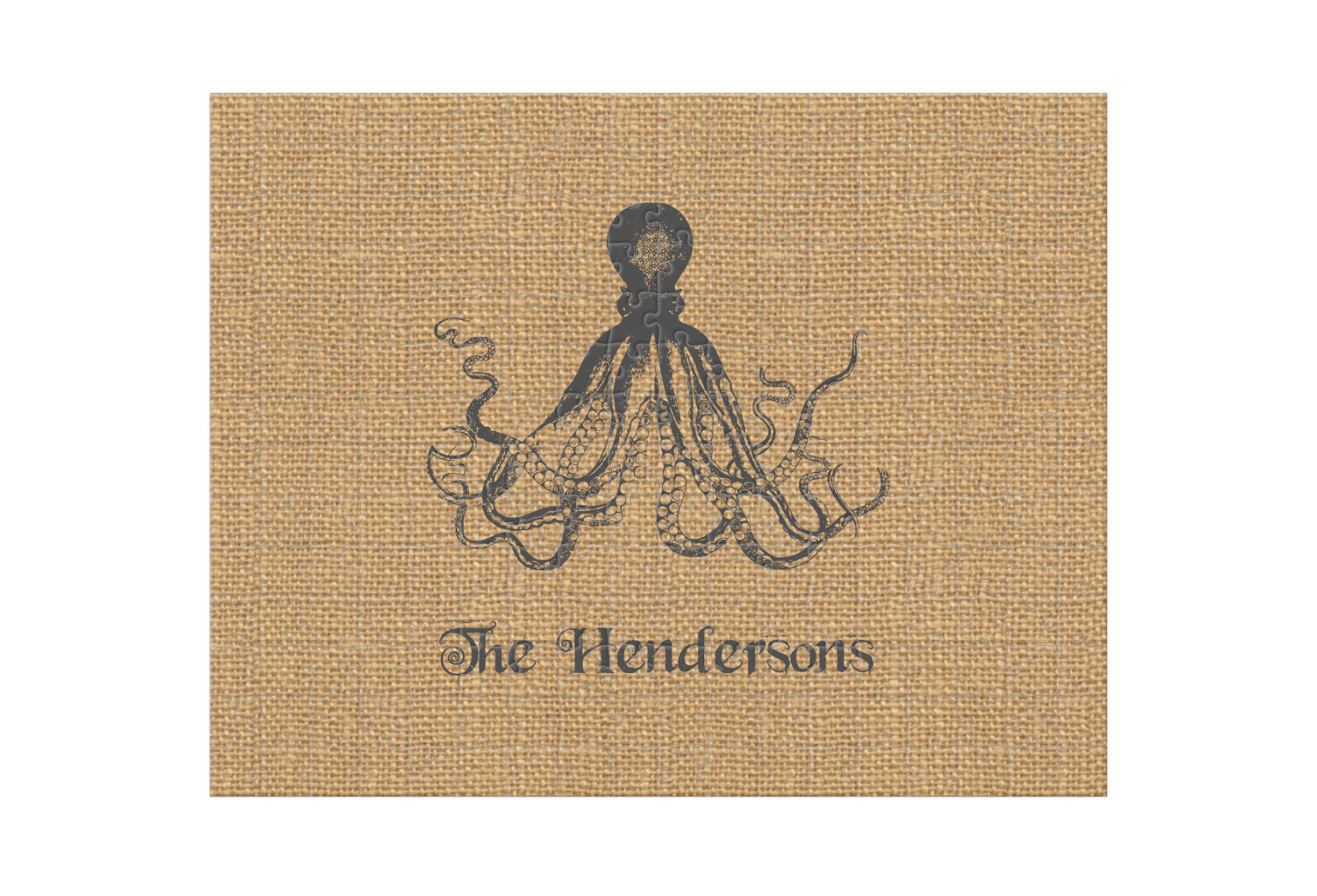 This design has a vintage octopus on burlap. It is a very chic and unusual design. We choose to use the traditional burlap color and the vintage octopus in a dark grey. Not only can you change the color of the burlap and the octopus, you can change the octopus as well. We have many different vintage designs that you can choose from such as sea horses, sea turtles, ships, anchors, compasses etc