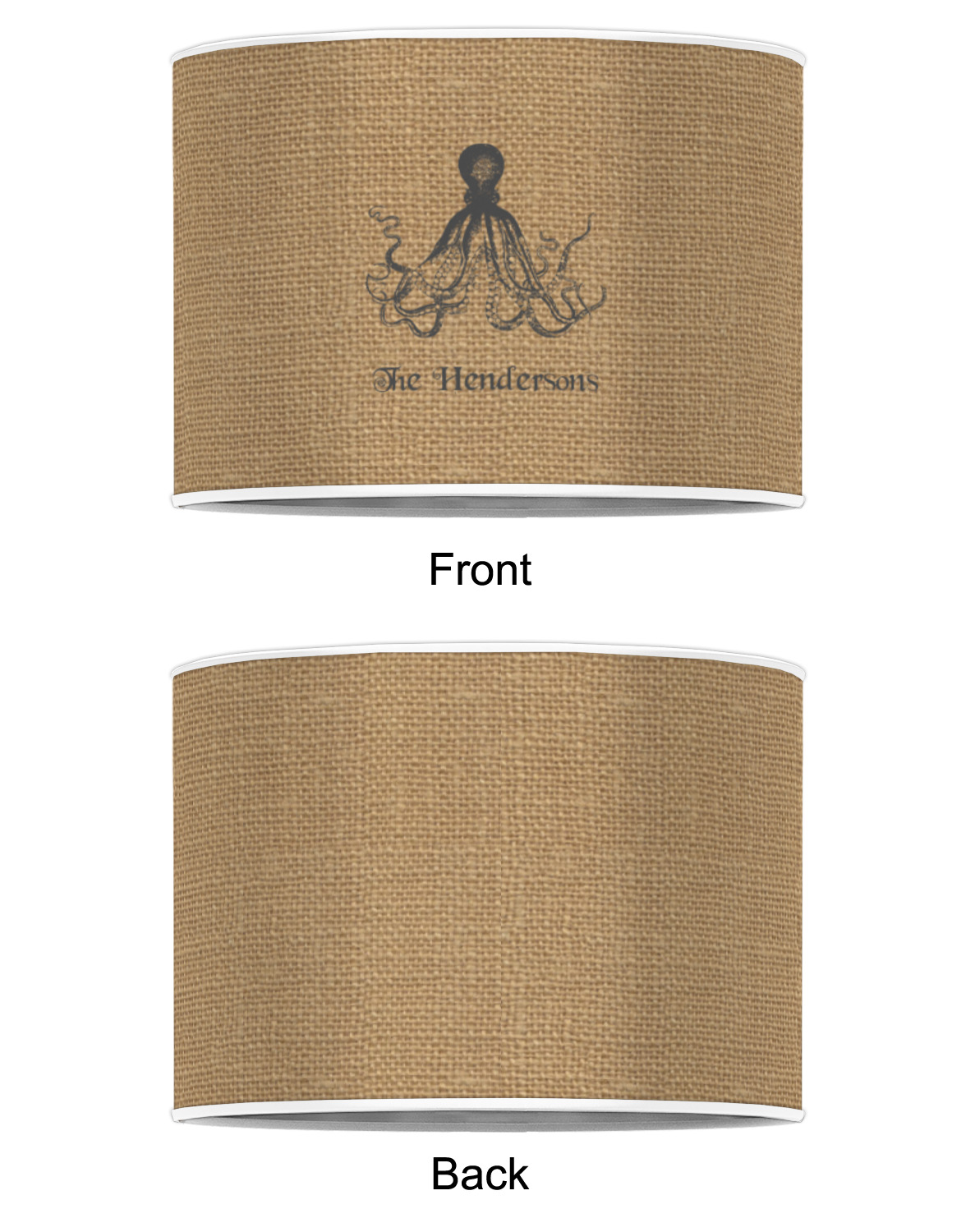 This design has a vintage octopus on burlap. It is a very chic and unusual design. We choose to use the traditional burlap color and the vintage octopus in a dark grey. Not only can you change the color of the burlap and the octopus, you can change the octopus as well. We have many different vintage designs that you can choose from such as sea horses, sea turtles, ships, anchors, compasses etc