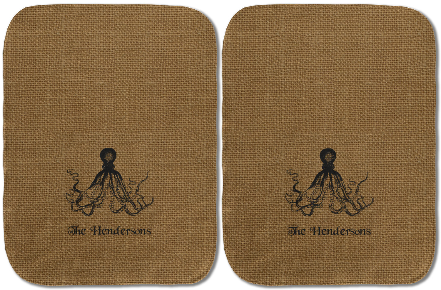This design has a vintage octopus on burlap. It is a very chic and unusual design. We choose to use the traditional burlap color and the vintage octopus in a dark grey. Not only can you change the color of the burlap and the octopus, you can change the octopus as well. We have many different vintage designs that you can choose from such as sea horses, sea turtles, ships, anchors, compasses etc