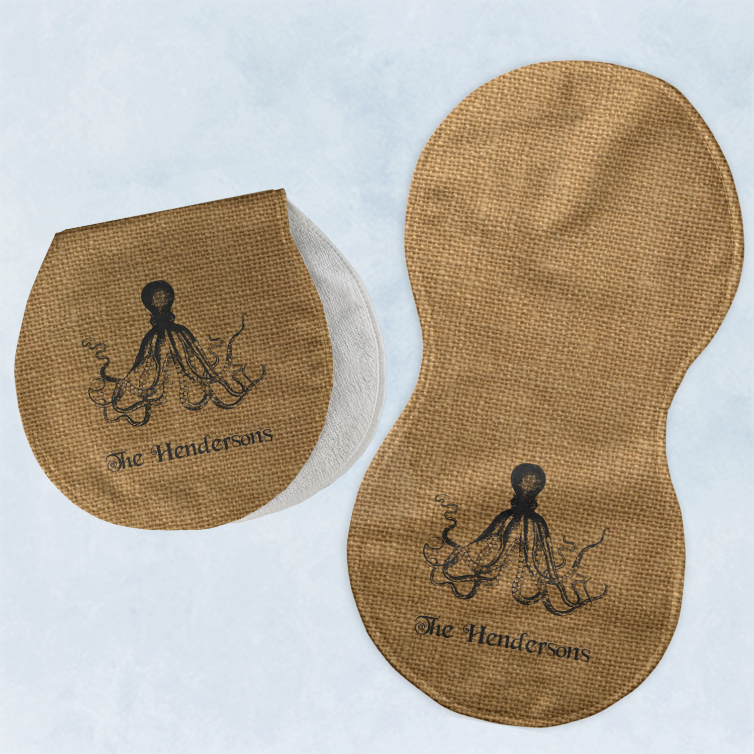 Choose your baby burp cloth from our two styles - Fleece (rectangular) or Microfiber Velour (peanut shape). The lightweight and absorbent design makes each burp cloth multipurpose; use them as a burp pad, a lap pad, a changing table, or a spare cloth to clean up any baby mess. Your customization is displayed across the front with baby-safe ink to ensure extra comfort with a white backing.