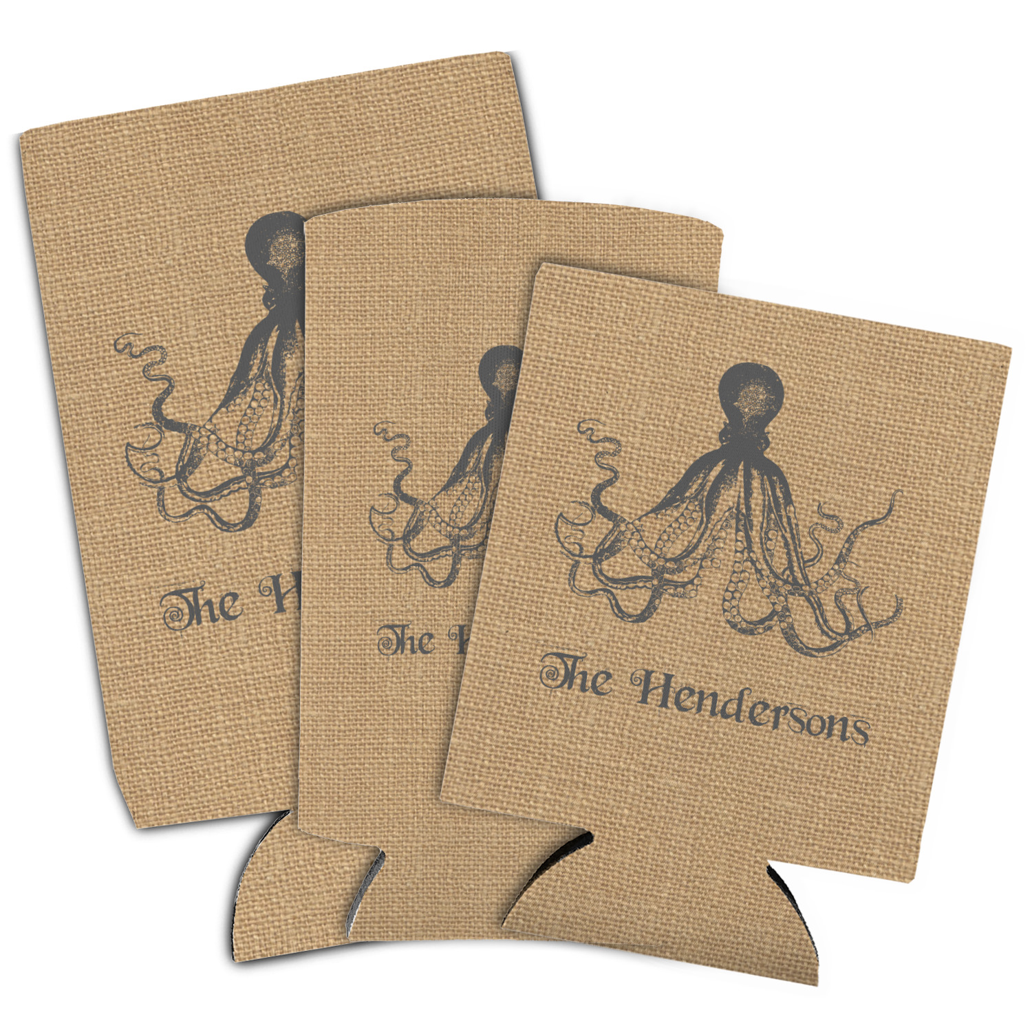 This design has a vintage octopus on burlap. It is a very chic and unusual design. We choose to use the traditional burlap color and the vintage octopus in a dark grey. Not only can you change the color of the burlap and the octopus, you can change the octopus as well. We have many different vintage designs that you can choose from such as sea horses, sea turtles, ships, anchors, compasses etc