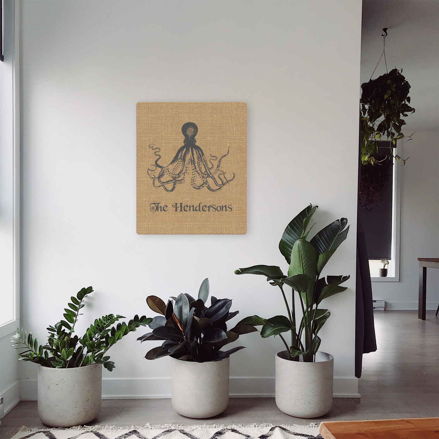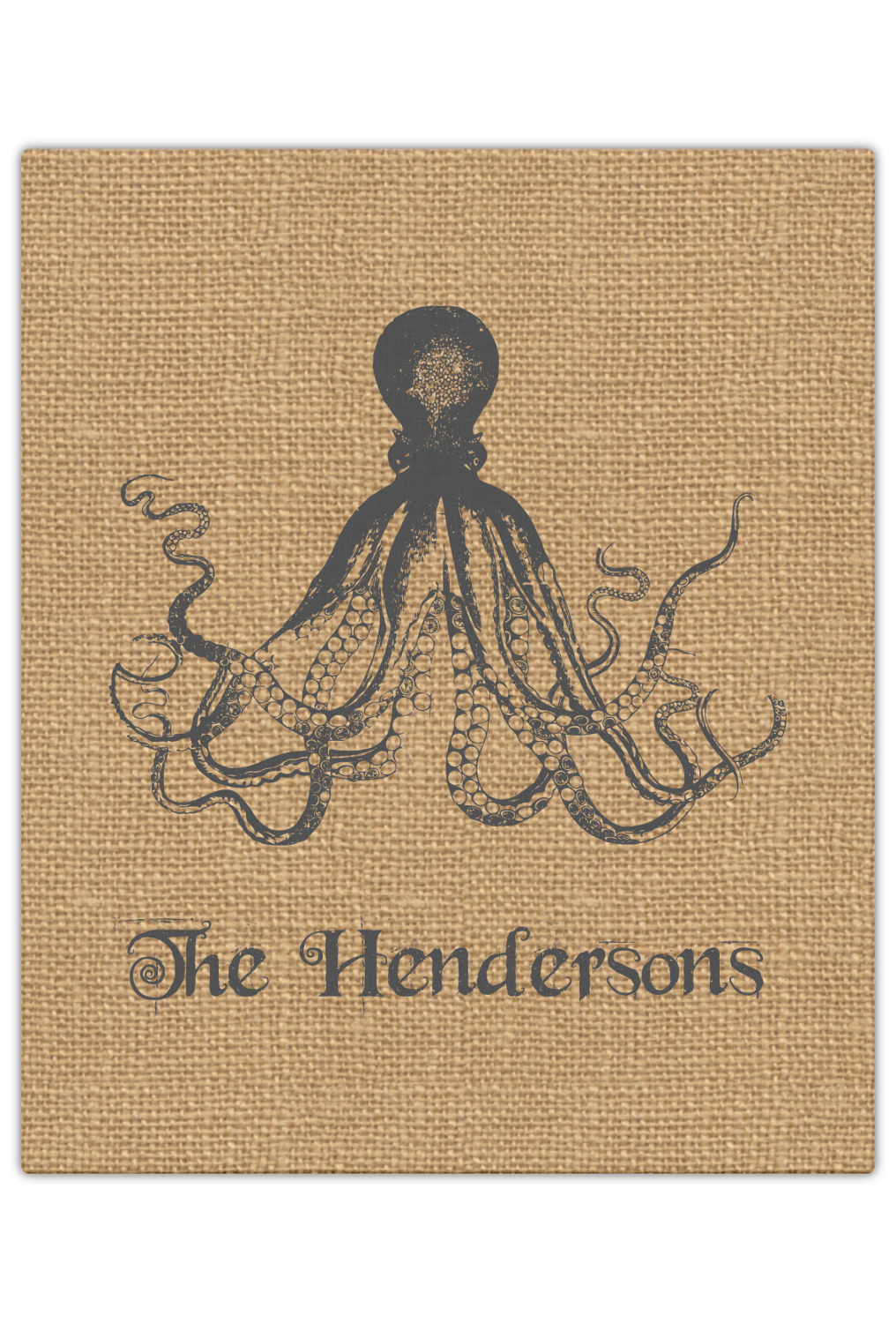 This design has a vintage octopus on burlap. It is a very chic and unusual design. We choose to use the traditional burlap color and the vintage octopus in a dark grey. Not only can you change the color of the burlap and the octopus, you can change the octopus as well. We have many different vintage designs that you can choose from such as sea horses, sea turtles, ships, anchors, compasses etc
