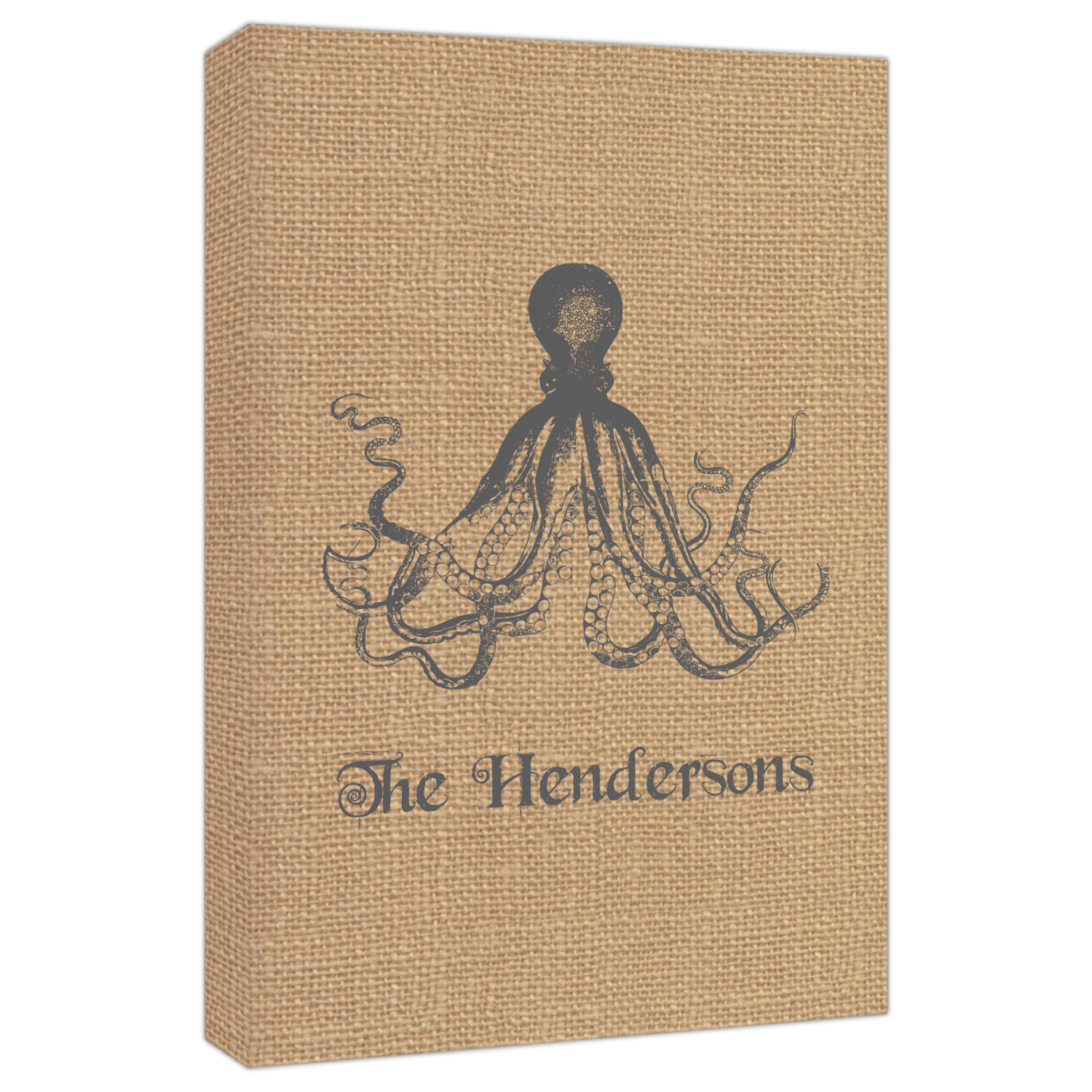 This design has a vintage octopus on burlap. It is a very chic and unusual design. We choose to use the traditional burlap color and the vintage octopus in a dark grey. Not only can you change the color of the burlap and the octopus, you can change the octopus as well. We have many different vintage designs that you can choose from such as sea horses, sea turtles, ships, anchors, compasses etc