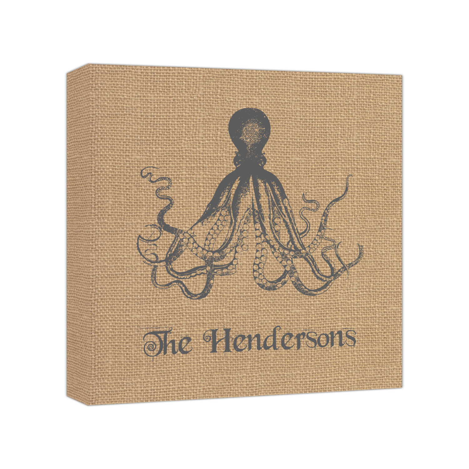 This design has a vintage octopus on burlap. It is a very chic and unusual design. We choose to use the traditional burlap color and the vintage octopus in a dark grey. Not only can you change the color of the burlap and the octopus, you can change the octopus as well. We have many different vintage designs that you can choose from such as sea horses, sea turtles, ships, anchors, compasses etc