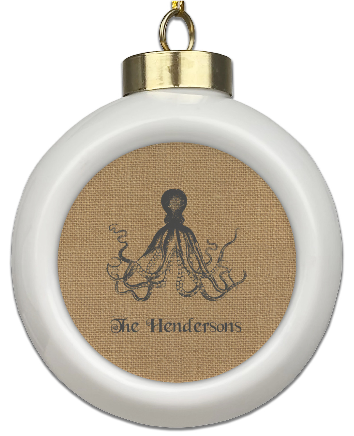 This design has a vintage octopus on burlap. It is a very chic and unusual design. We choose to use the traditional burlap color and the vintage octopus in a dark grey. Not only can you change the color of the burlap and the octopus, you can change the octopus as well. We have many different vintage designs that you can choose from such as sea horses, sea turtles, ships, anchors, compasses etc