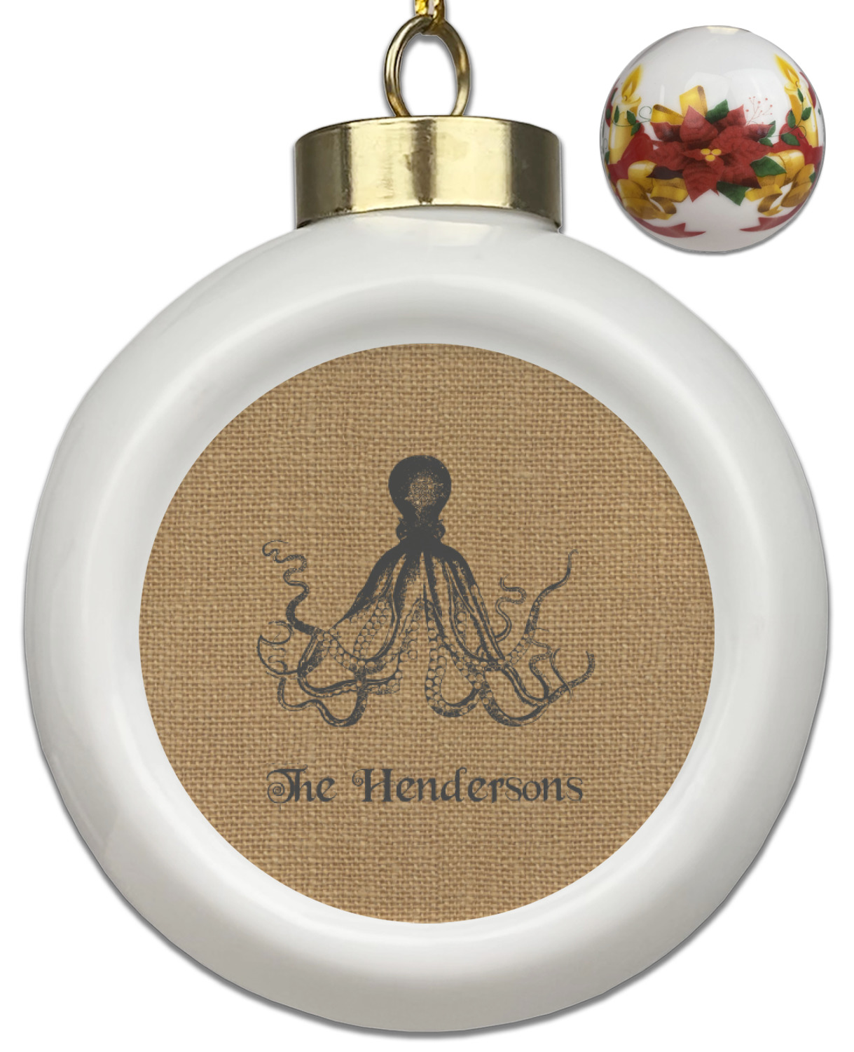 This design has a vintage octopus on burlap. It is a very chic and unusual design. We choose to use the traditional burlap color and the vintage octopus in a dark grey. Not only can you change the color of the burlap and the octopus, you can change the octopus as well. We have many different vintage designs that you can choose from such as sea horses, sea turtles, ships, anchors, compasses etc