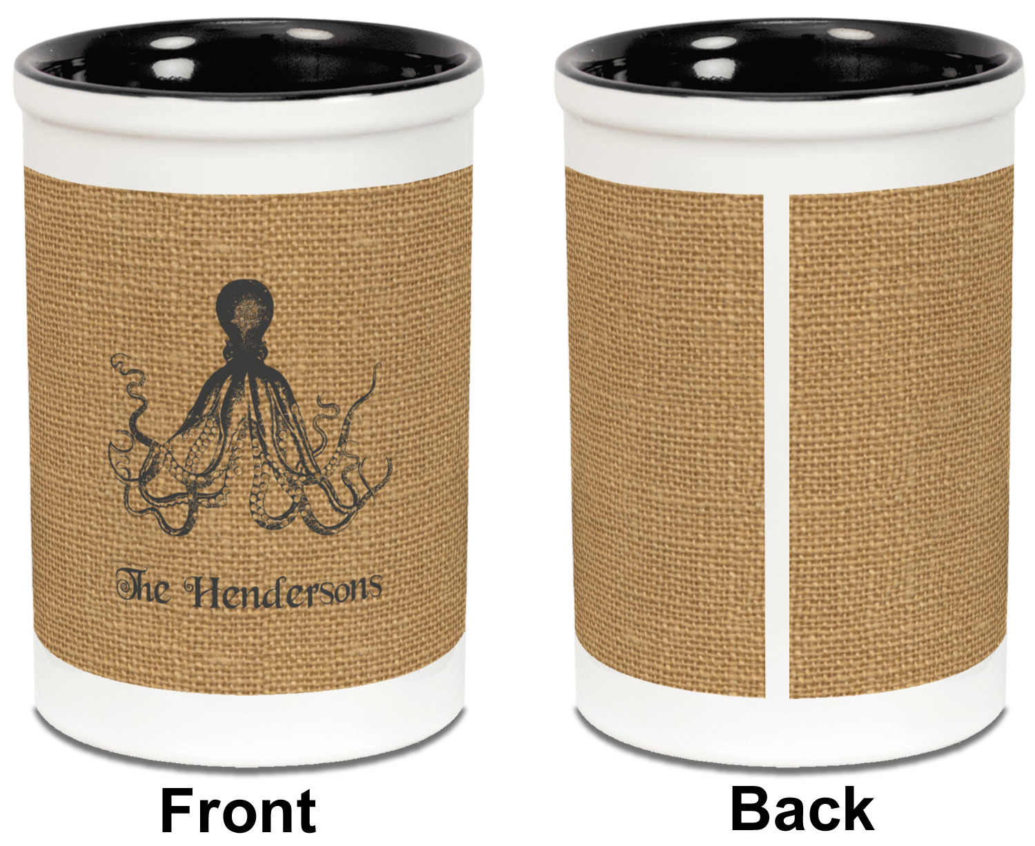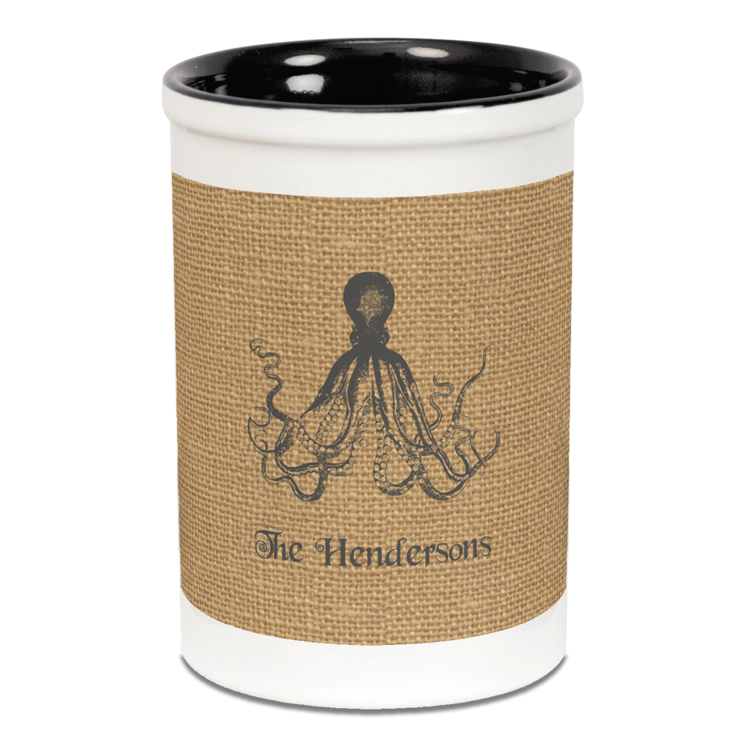 This design has a vintage octopus on burlap. It is a very chic and unusual design. We choose to use the traditional burlap color and the vintage octopus in a dark grey. Not only can you change the color of the burlap and the octopus, you can change the octopus as well. We have many different vintage designs that you can choose from such as sea horses, sea turtles, ships, anchors, compasses etc