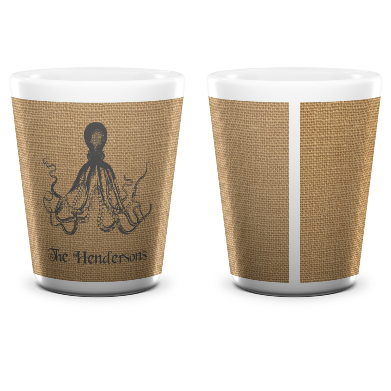 Made from ceramic these shot glasses are printed in full color with the design of your choice. These are a standard 1.5oz size and stand 2.25" tall. Available in a full white ceramic or a two-tone with a black color inside the shot glass. Buy a single or a set of 4, all of which can be designed separately to get you just what you want and need.