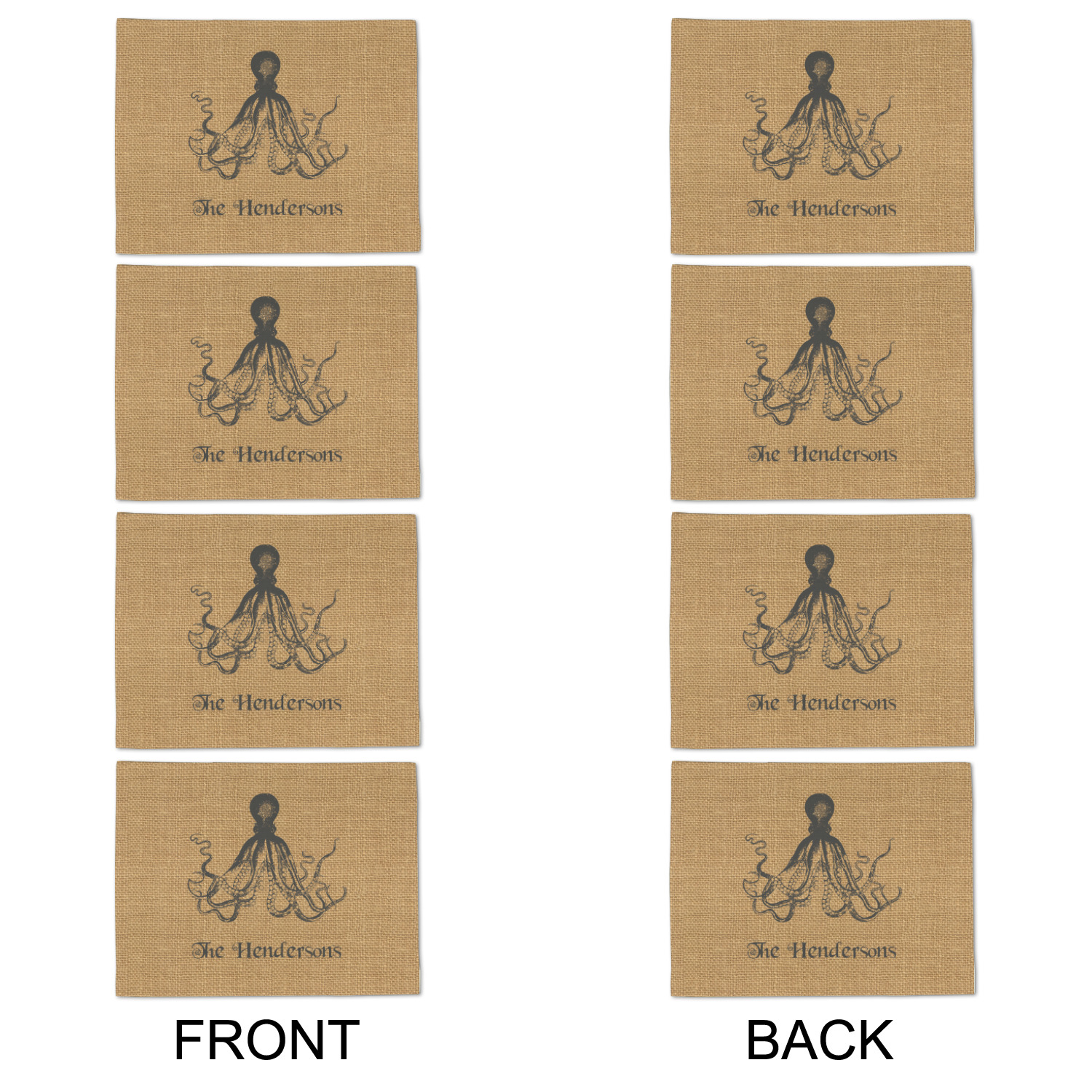 This design has a vintage octopus on burlap. It is a very chic and unusual design. We choose to use the traditional burlap color and the vintage octopus in a dark grey. Not only can you change the color of the burlap and the octopus, you can change the octopus as well. We have many different vintage designs that you can choose from such as sea horses, sea turtles, ships, anchors, compasses etc