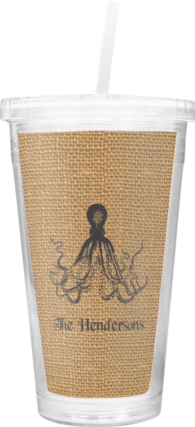 These tumblers are customized for you with a printed insert between the two walls of the cup. The lid screws on tight and helps to keep your drink cold.