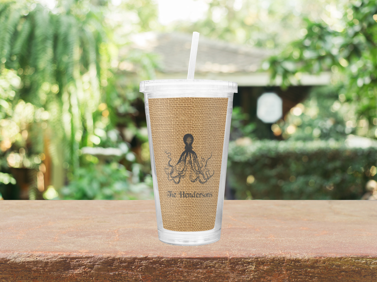 This design has a vintage octopus on burlap. It is a very chic and unusual design. We choose to use the traditional burlap color and the vintage octopus in a dark grey. Not only can you change the color of the burlap and the octopus, you can change the octopus as well. We have many different vintage designs that you can choose from such as sea horses, sea turtles, ships, anchors, compasses etc