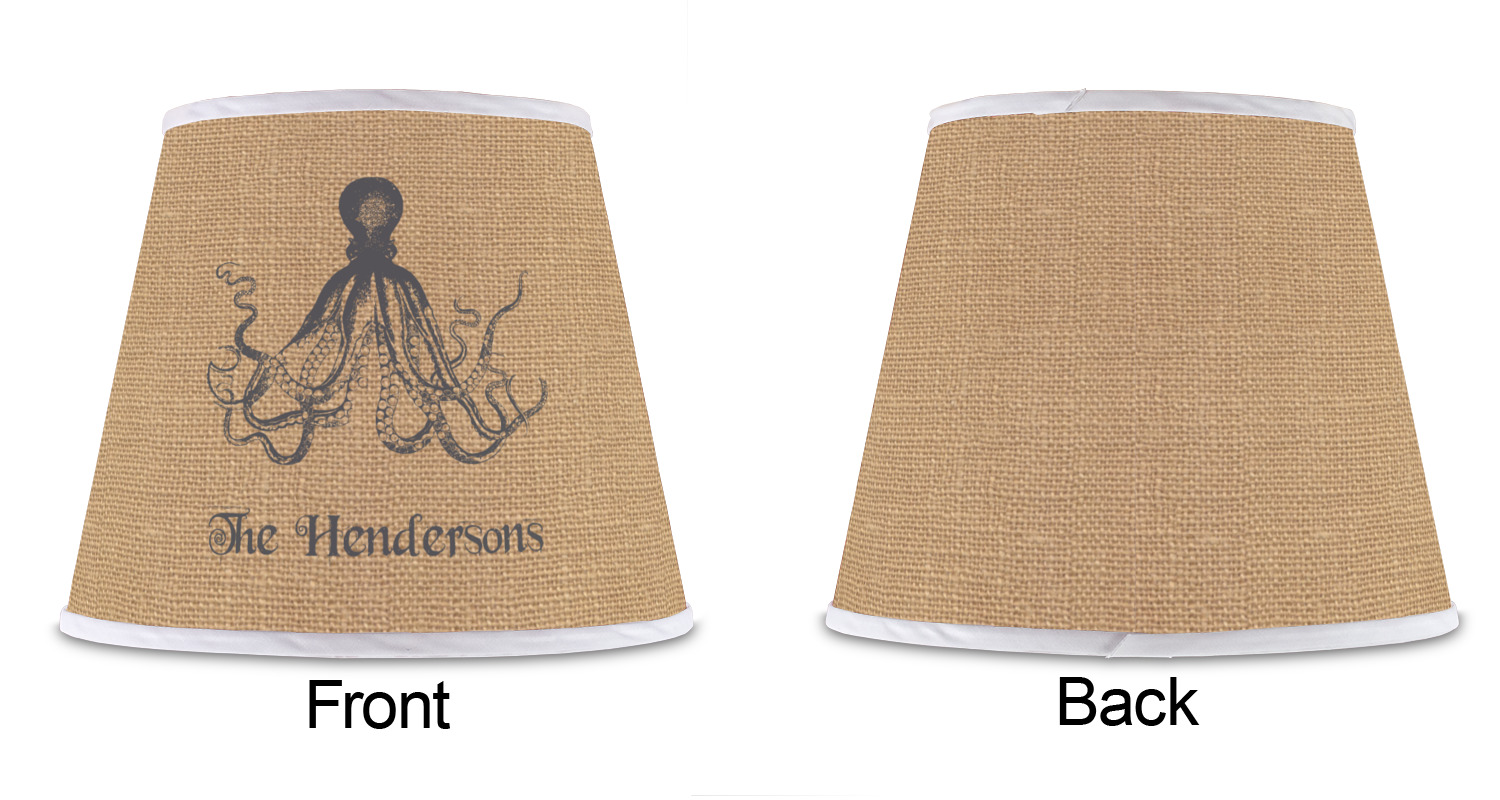 This design has a vintage octopus on burlap. It is a very chic and unusual design. We choose to use the traditional burlap color and the vintage octopus in a dark grey. Not only can you change the color of the burlap and the octopus, you can change the octopus as well. We have many different vintage designs that you can choose from such as sea horses, sea turtles, ships, anchors, compasses etc