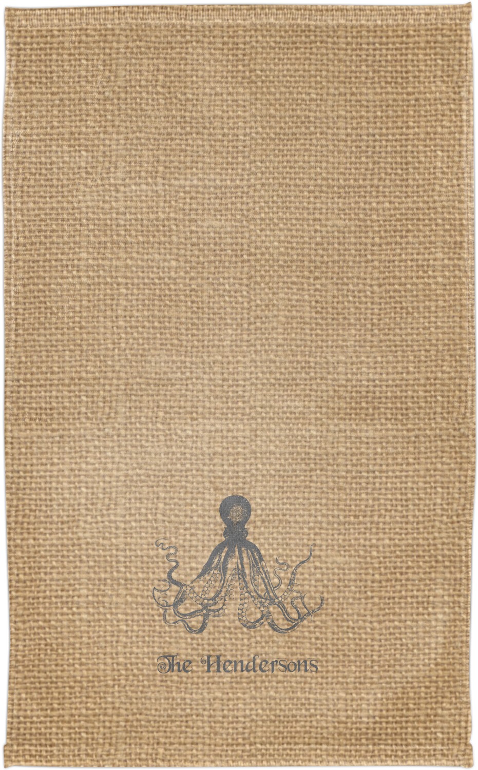This design has a vintage octopus on burlap. It is a very chic and unusual design. We choose to use the traditional burlap color and the vintage octopus in a dark grey. Not only can you change the color of the burlap and the octopus, you can change the octopus as well. We have many different vintage designs that you can choose from such as sea horses, sea turtles, ships, anchors, compasses etc
