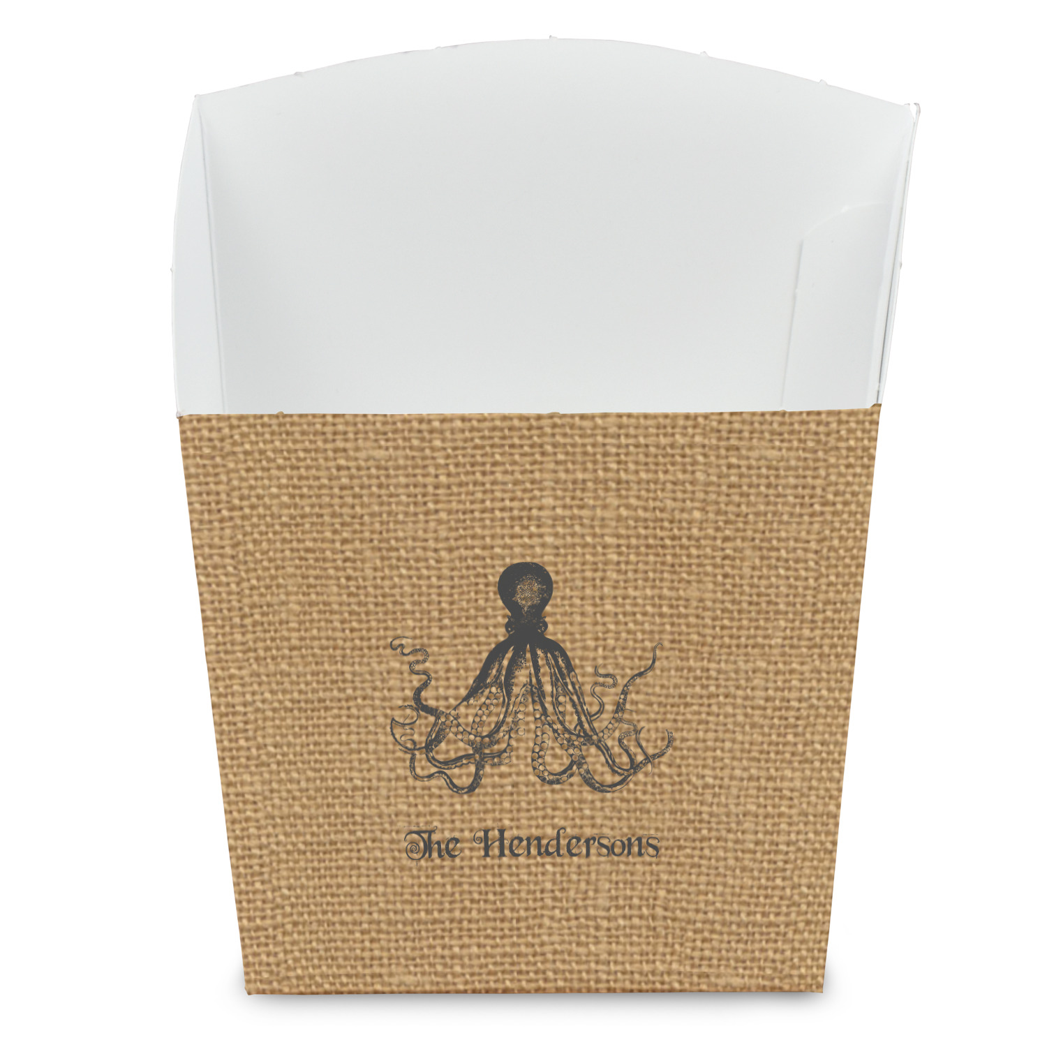 Since it is an open box, it works very well as a party snack cup (instead of plates) for different types of dry snacks and treats such as popcorn, cheezies, pretzels, chips, twizzlers, etc. This box can easily be carried with a drink all in one hand!