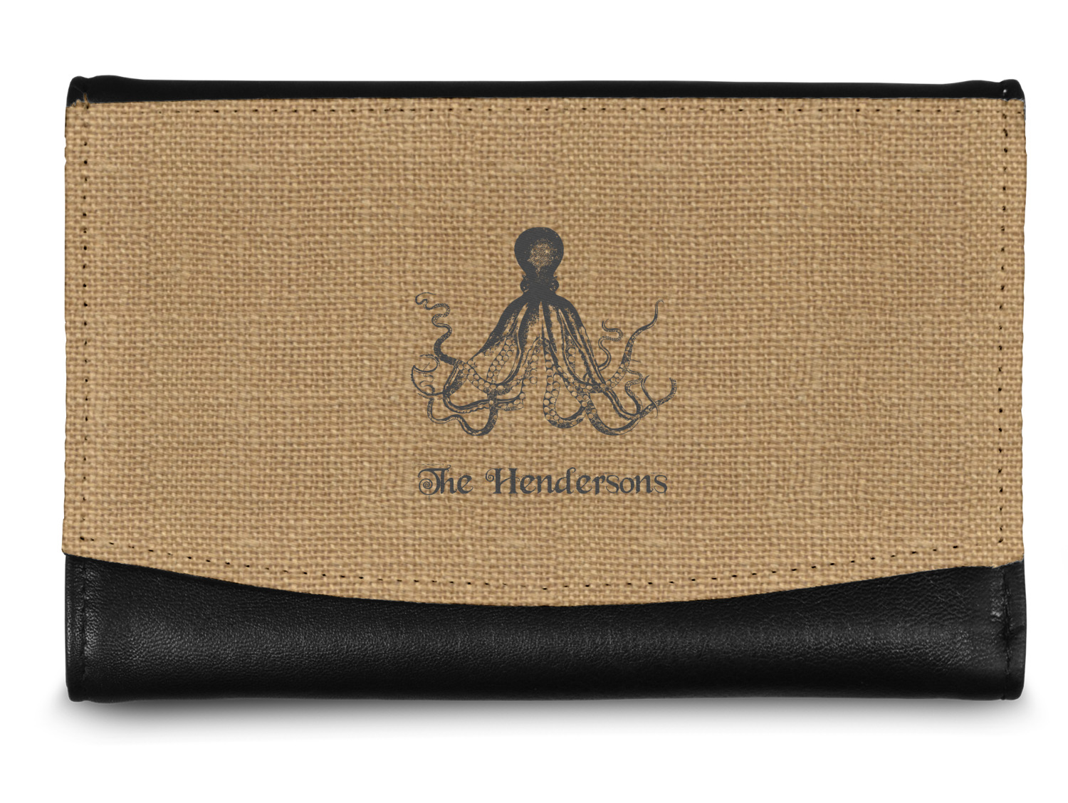 The compact size of this wallet - 5.5in wide, 3.5in tall and 0.75in thick when folded - makes it perfect to hold in hand and small enough to fit in a clutch or a normal size purse. The outside flap is customized with your choice of artwork and closes with a snap closure - with two different snaps to allow it to be adjusted when storing more items - to securely fasten the flap.