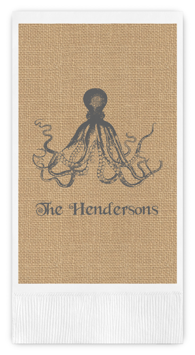This design has a vintage octopus on burlap. It is a very chic and unusual design. We choose to use the traditional burlap color and the vintage octopus in a dark grey. Not only can you change the color of the burlap and the octopus, you can change the octopus as well. We have many different vintage designs that you can choose from such as sea horses, sea turtles, ships, anchors, compasses etc