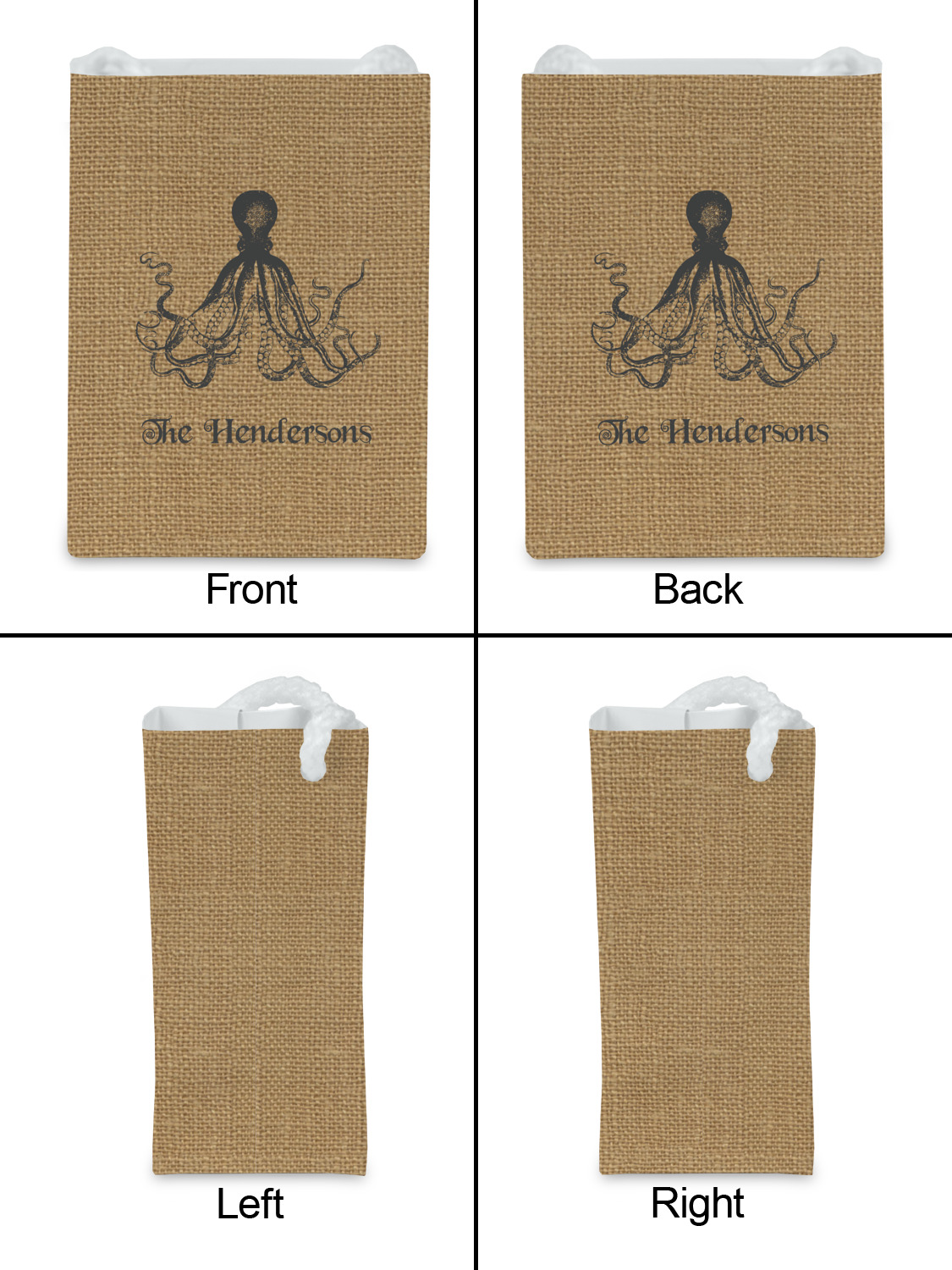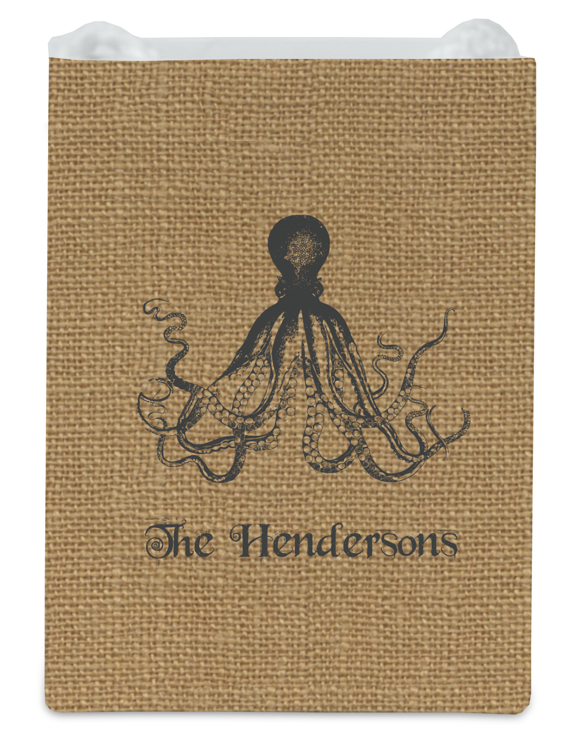 This design has a vintage octopus on burlap. It is a very chic and unusual design. We choose to use the traditional burlap color and the vintage octopus in a dark grey. Not only can you change the color of the burlap and the octopus, you can change the octopus as well. We have many different vintage designs that you can choose from such as sea horses, sea turtles, ships, anchors, compasses etc