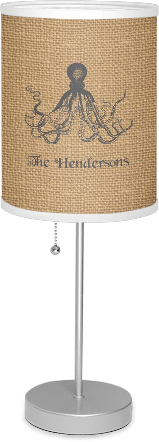 This design has a vintage octopus on burlap. It is a very chic and unusual design. We choose to use the traditional burlap color and the vintage octopus in a dark grey. Not only can you change the color of the burlap and the octopus, you can change the octopus as well. We have many different vintage designs that you can choose from such as sea horses, sea turtles, ships, anchors, compasses etc