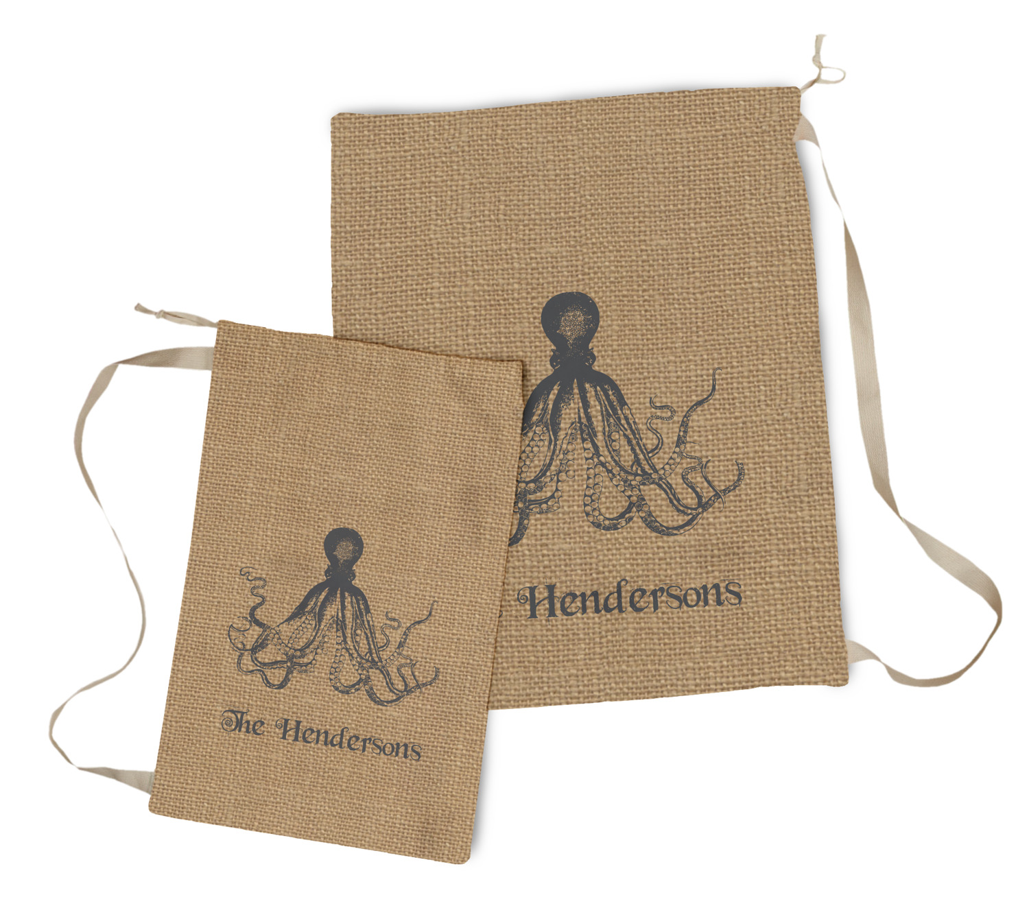 This design has a vintage octopus on burlap. It is a very chic and unusual design. We choose to use the traditional burlap color and the vintage octopus in a dark grey. Not only can you change the color of the burlap and the octopus, you can change the octopus as well. We have many different vintage designs that you can choose from such as sea horses, sea turtles, ships, anchors, compasses etc