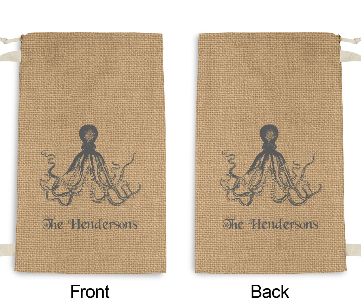 This design has a vintage octopus on burlap. It is a very chic and unusual design. We choose to use the traditional burlap color and the vintage octopus in a dark grey. Not only can you change the color of the burlap and the octopus, you can change the octopus as well. We have many different vintage designs that you can choose from such as sea horses, sea turtles, ships, anchors, compasses etc