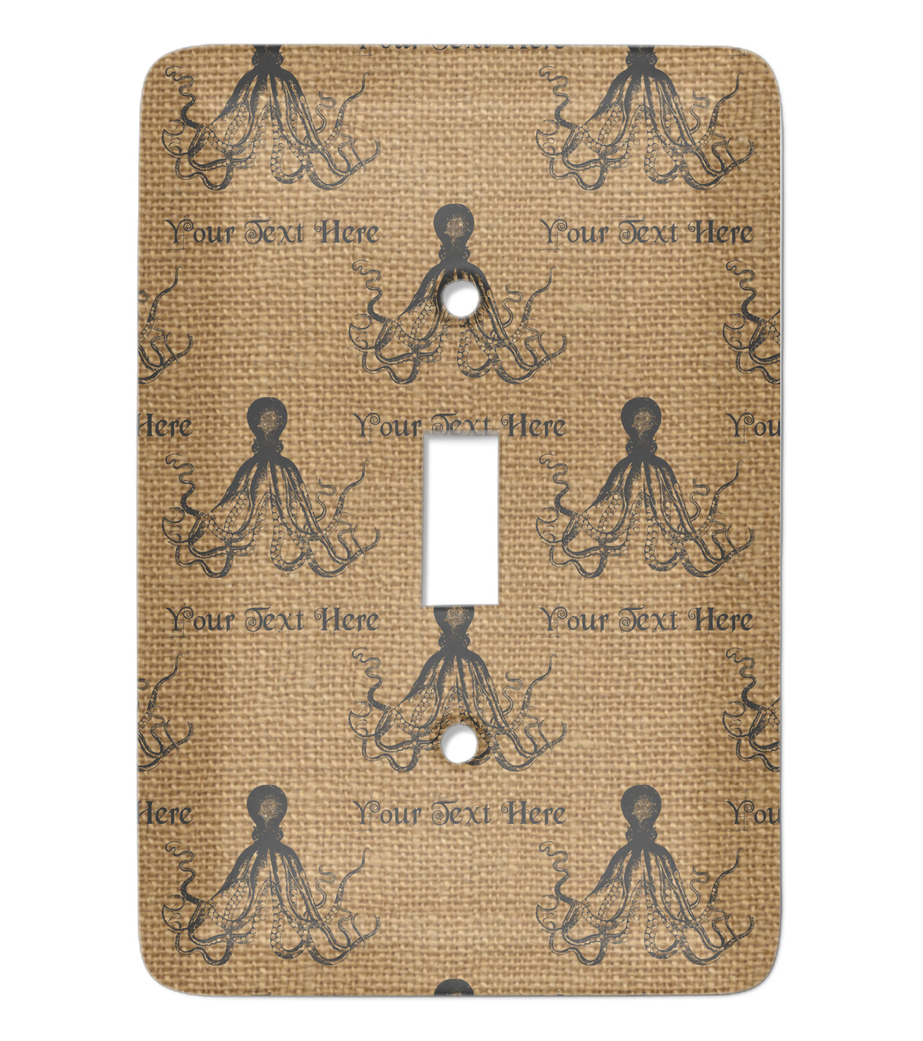 This design has a vintage octopus on burlap. It is a very chic and unusual design. We choose to use the traditional burlap color and the vintage octopus in a dark grey. Not only can you change the color of the burlap and the octopus, you can change the octopus as well. We have many different vintage designs that you can choose from such as sea horses, sea turtles, ships, anchors, compasses etc