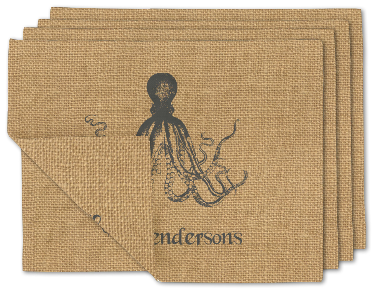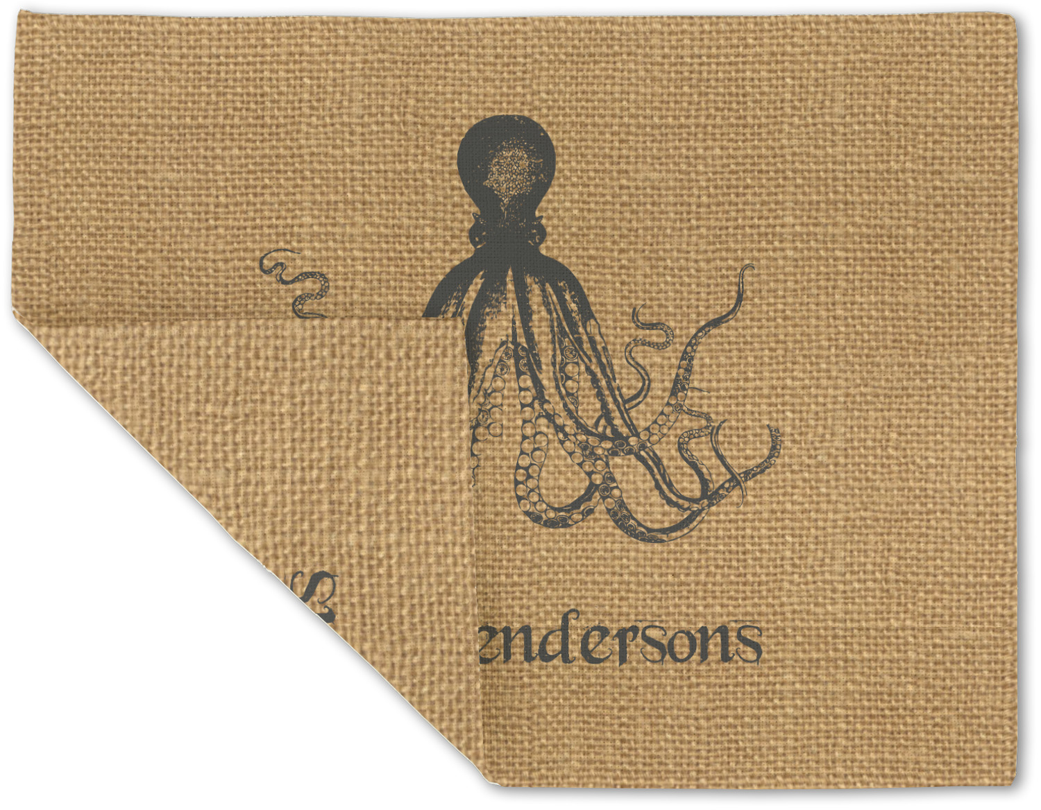 This design has a vintage octopus on burlap. It is a very chic and unusual design. We choose to use the traditional burlap color and the vintage octopus in a dark grey. Not only can you change the color of the burlap and the octopus, you can change the octopus as well. We have many different vintage designs that you can choose from such as sea horses, sea turtles, ships, anchors, compasses etc