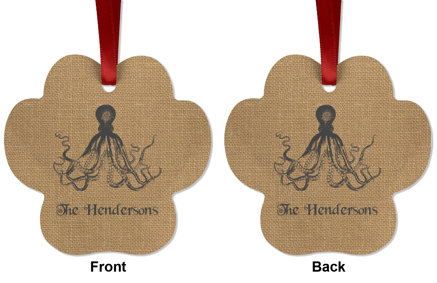 This design has a vintage octopus on burlap. It is a very chic and unusual design. We choose to use the traditional burlap color and the vintage octopus in a dark grey. Not only can you change the color of the burlap and the octopus, you can change the octopus as well. We have many different vintage designs that you can choose from such as sea horses, sea turtles, ships, anchors, compasses etc