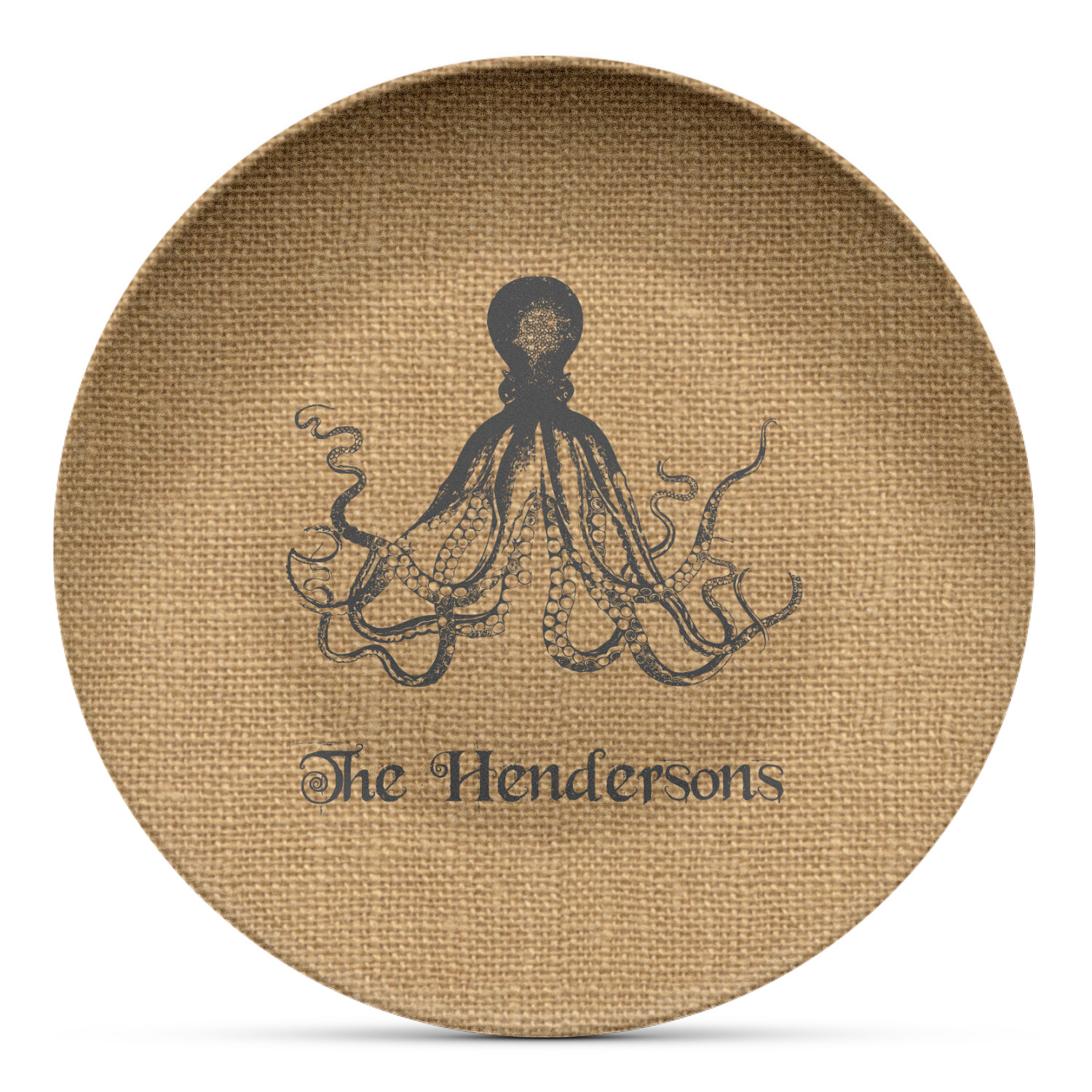 This design has a vintage octopus on burlap. It is a very chic and unusual design. We choose to use the traditional burlap color and the vintage octopus in a dark grey. Not only can you change the color of the burlap and the octopus, you can change the octopus as well. We have many different vintage designs that you can choose from such as sea horses, sea turtles, ships, anchors, compasses etc