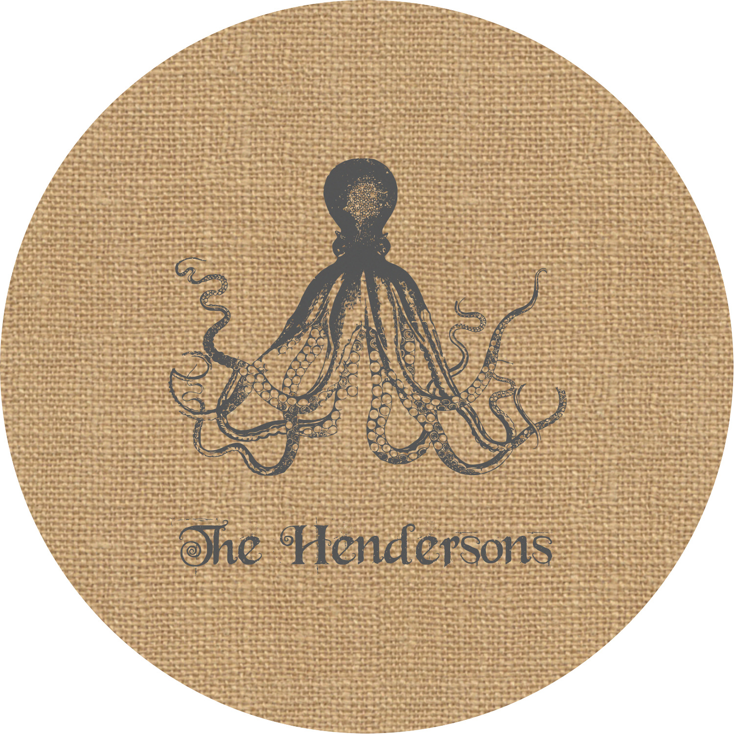 This design has a vintage octopus on burlap. It is a very chic and unusual design. We choose to use the traditional burlap color and the vintage octopus in a dark grey. Not only can you change the color of the burlap and the octopus, you can change the octopus as well. We have many different vintage designs that you can choose from such as sea horses, sea turtles, ships, anchors, compasses etc