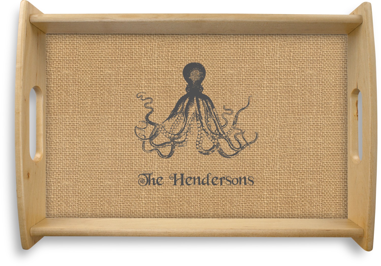 This design has a vintage octopus on burlap. It is a very chic and unusual design. We choose to use the traditional burlap color and the vintage octopus in a dark grey. Not only can you change the color of the burlap and the octopus, you can change the octopus as well. We have many different vintage designs that you can choose from such as sea horses, sea turtles, ships, anchors, compasses etc