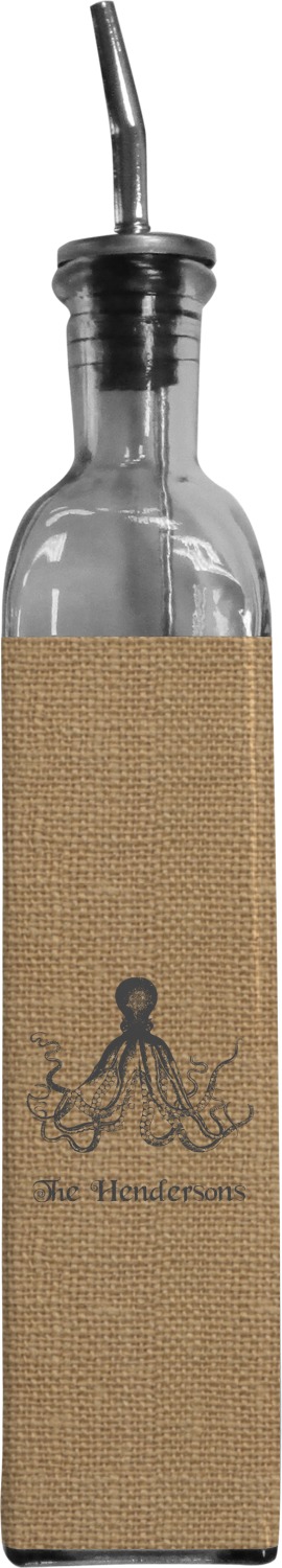Made from recycled glass in Spain, these oil bottles have a classic, delicate look, and are accompanied by a metal spout for controlled pouring. Each bottle holds approximately 13 ounces and measures at 12 by 2 inches. We customize your glass oil bottle by applying your personalized design on the front and sides, using an adhesive. Our customizable stickers are made from high quality, gloss vinyl and are printed with waterproof, eco-solvent inks. These pieces are machine cut for accuracy and symmetry. The result is a robust, waterproof, adhesive decal that will not fade or deteriorate with time.