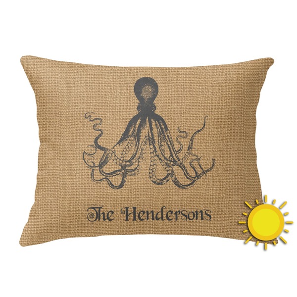 This design has a vintage octopus on burlap. It is a very chic and unusual design. We choose to use the traditional burlap color and the vintage octopus in a dark grey. Not only can you change the color of the burlap and the octopus, you can change the octopus as well. We have many different vintage designs that you can choose from such as sea horses, sea turtles, ships, anchors, compasses etc