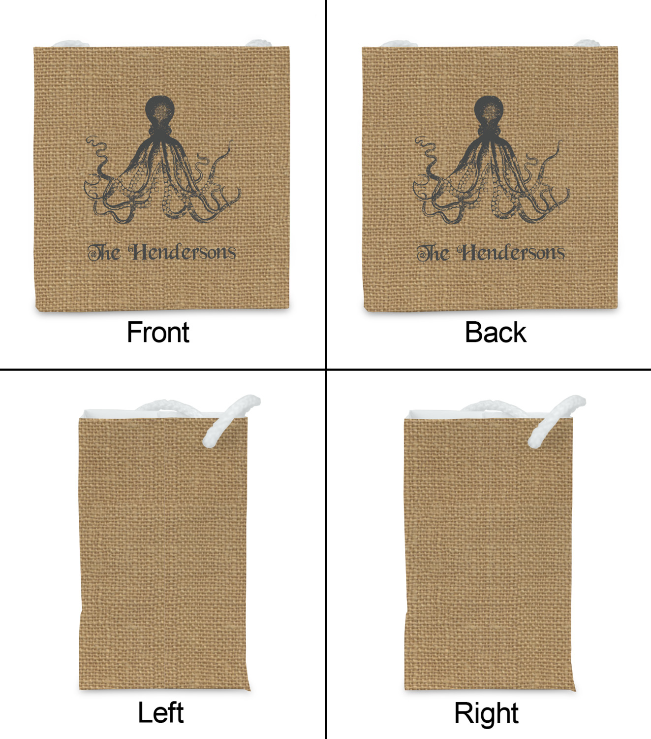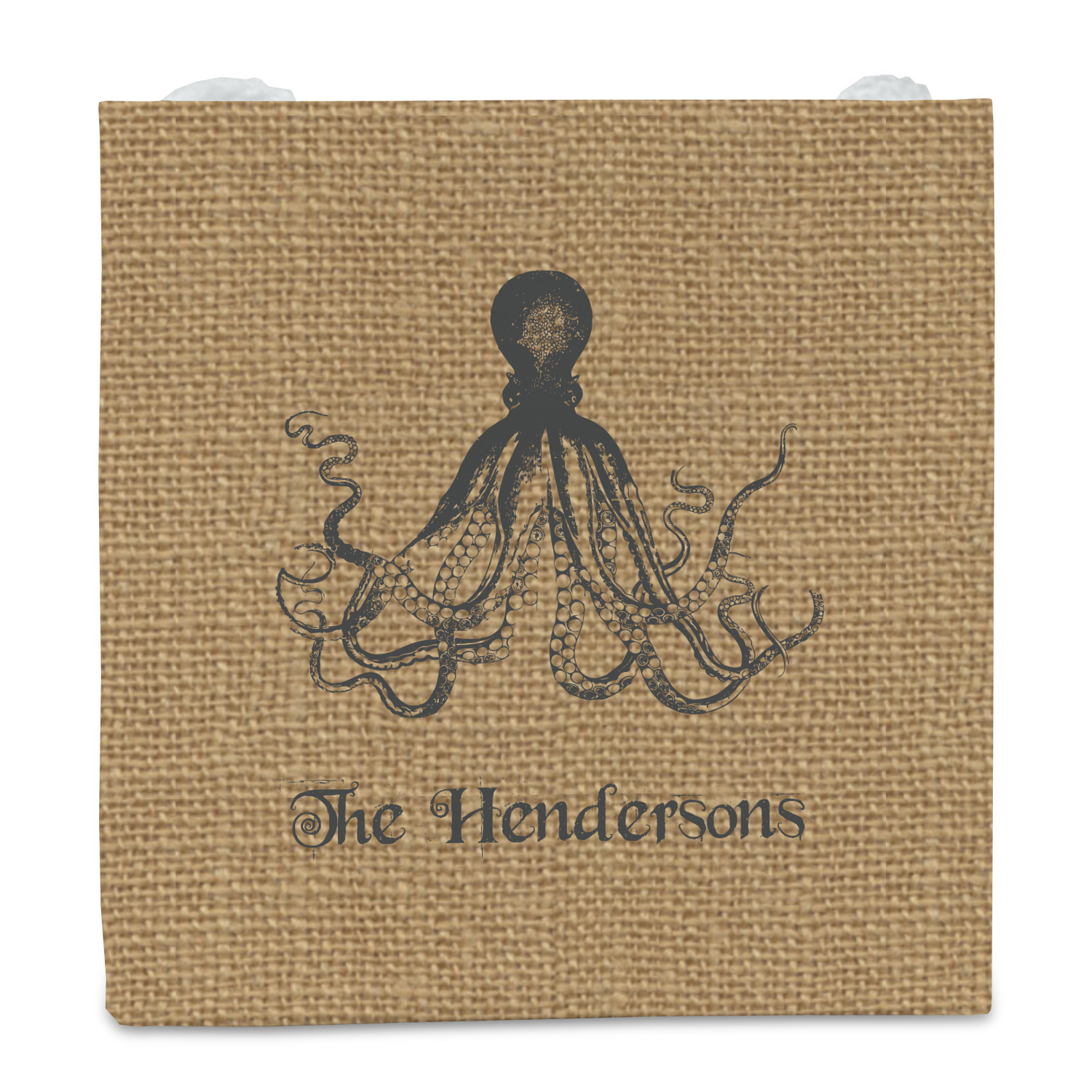 This design has a vintage octopus on burlap. It is a very chic and unusual design. We choose to use the traditional burlap color and the vintage octopus in a dark grey. Not only can you change the color of the burlap and the octopus, you can change the octopus as well. We have many different vintage designs that you can choose from such as sea horses, sea turtles, ships, anchors, compasses etc