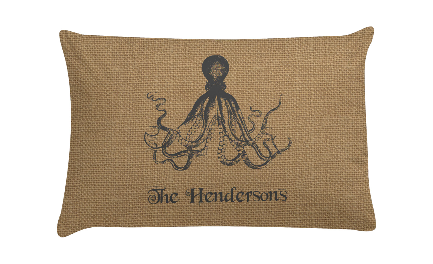 This design has a vintage octopus on burlap. It is a very chic and unusual design. We choose to use the traditional burlap color and the vintage octopus in a dark grey. Not only can you change the color of the burlap and the octopus, you can change the octopus as well. We have many different vintage designs that you can choose from such as sea horses, sea turtles, ships, anchors, compasses etc