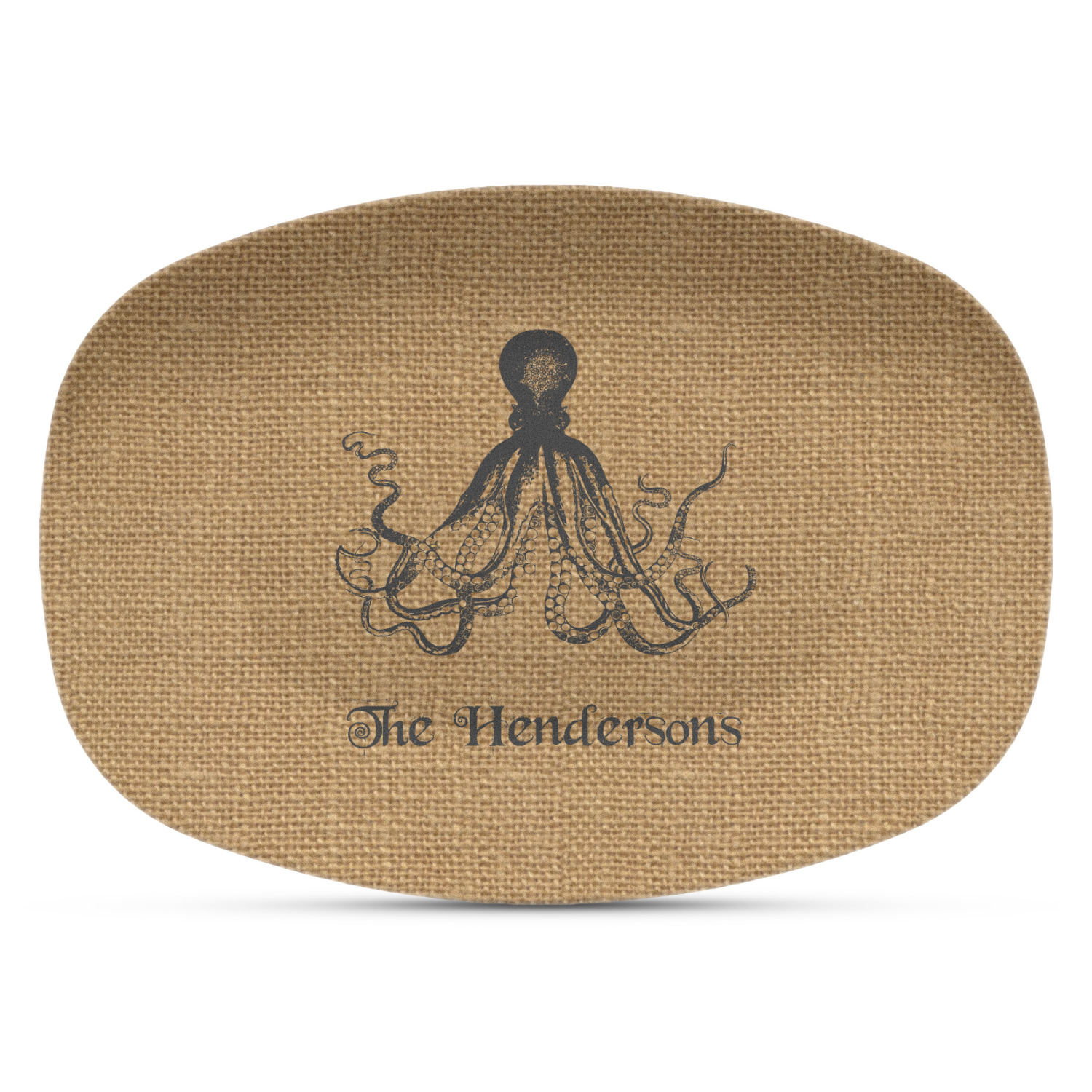 This design has a vintage octopus on burlap. It is a very chic and unusual design. We choose to use the traditional burlap color and the vintage octopus in a dark grey. Not only can you change the color of the burlap and the octopus, you can change the octopus as well. We have many different vintage designs that you can choose from such as sea horses, sea turtles, ships, anchors, compasses etc