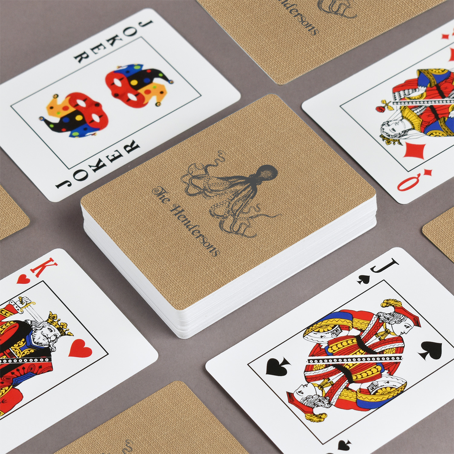 Our playing cards are perfect for family game nights or poker nights. A deck of customized playing cards ups the level of fun & entertainment to your game or poker nights. Imagine playing cards customized to match the theme of your game room, or game night, or that special event, or occasion with gambling tables!