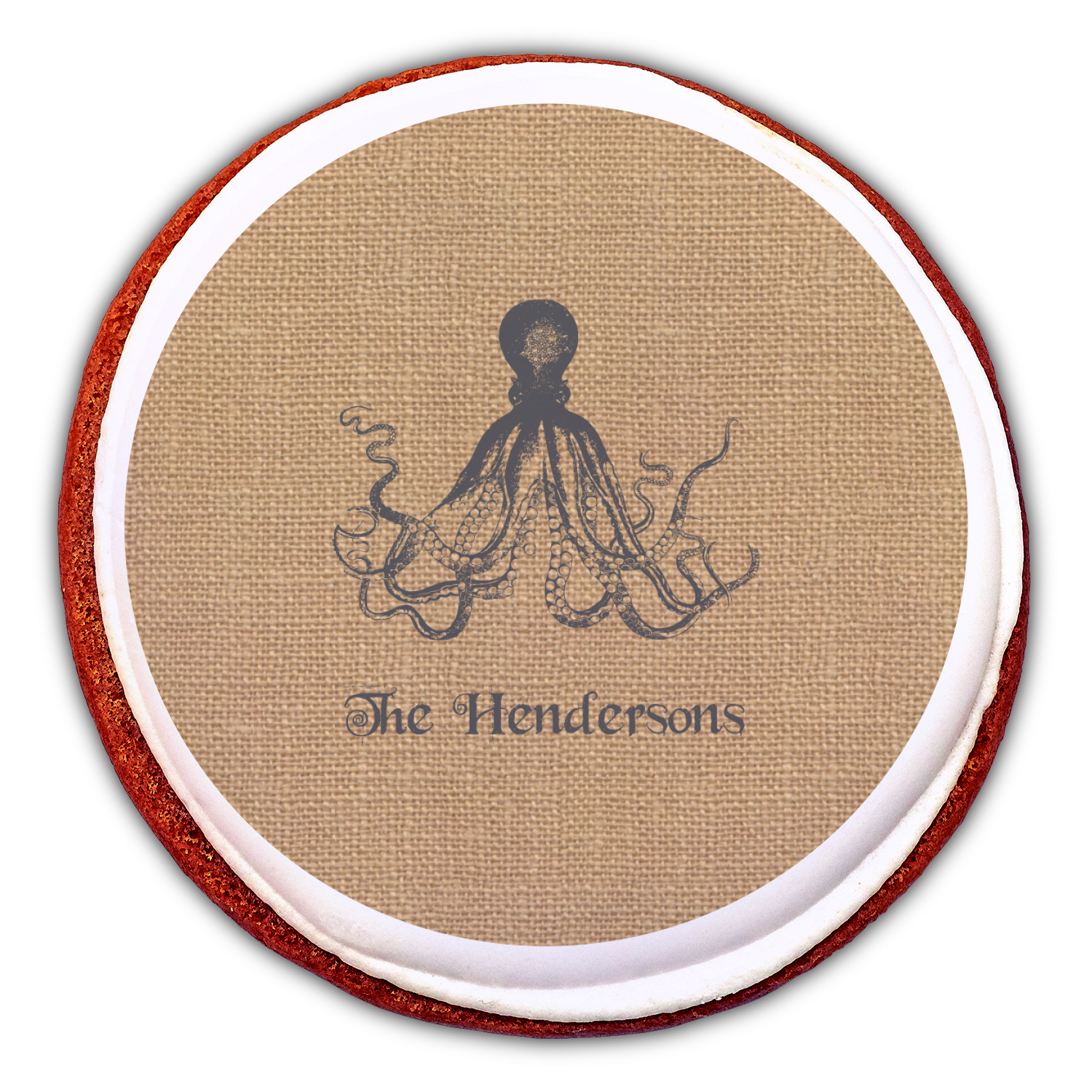 This design has a vintage octopus on burlap. It is a very chic and unusual design. We choose to use the traditional burlap color and the vintage octopus in a dark grey. Not only can you change the color of the burlap and the octopus, you can change the octopus as well. We have many different vintage designs that you can choose from such as sea horses, sea turtles, ships, anchors, compasses etc