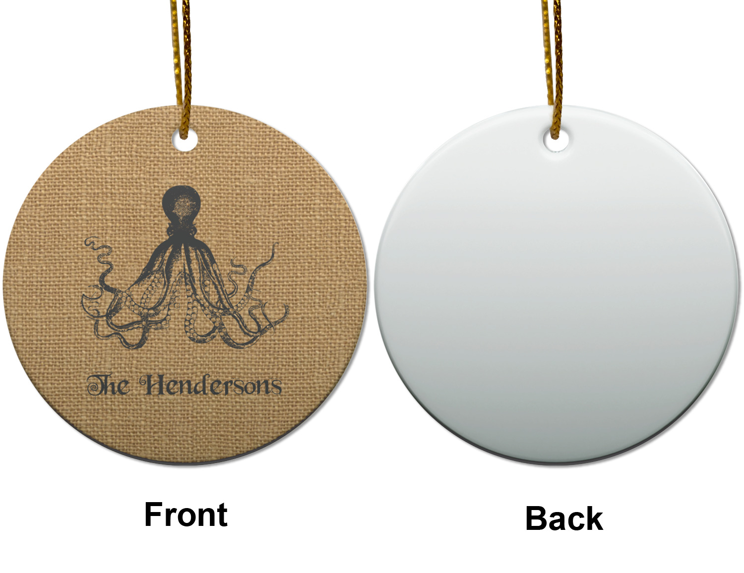 This design has a vintage octopus on burlap. It is a very chic and unusual design. We choose to use the traditional burlap color and the vintage octopus in a dark grey. Not only can you change the color of the burlap and the octopus, you can change the octopus as well. We have many different vintage designs that you can choose from such as sea horses, sea turtles, ships, anchors, compasses etc
