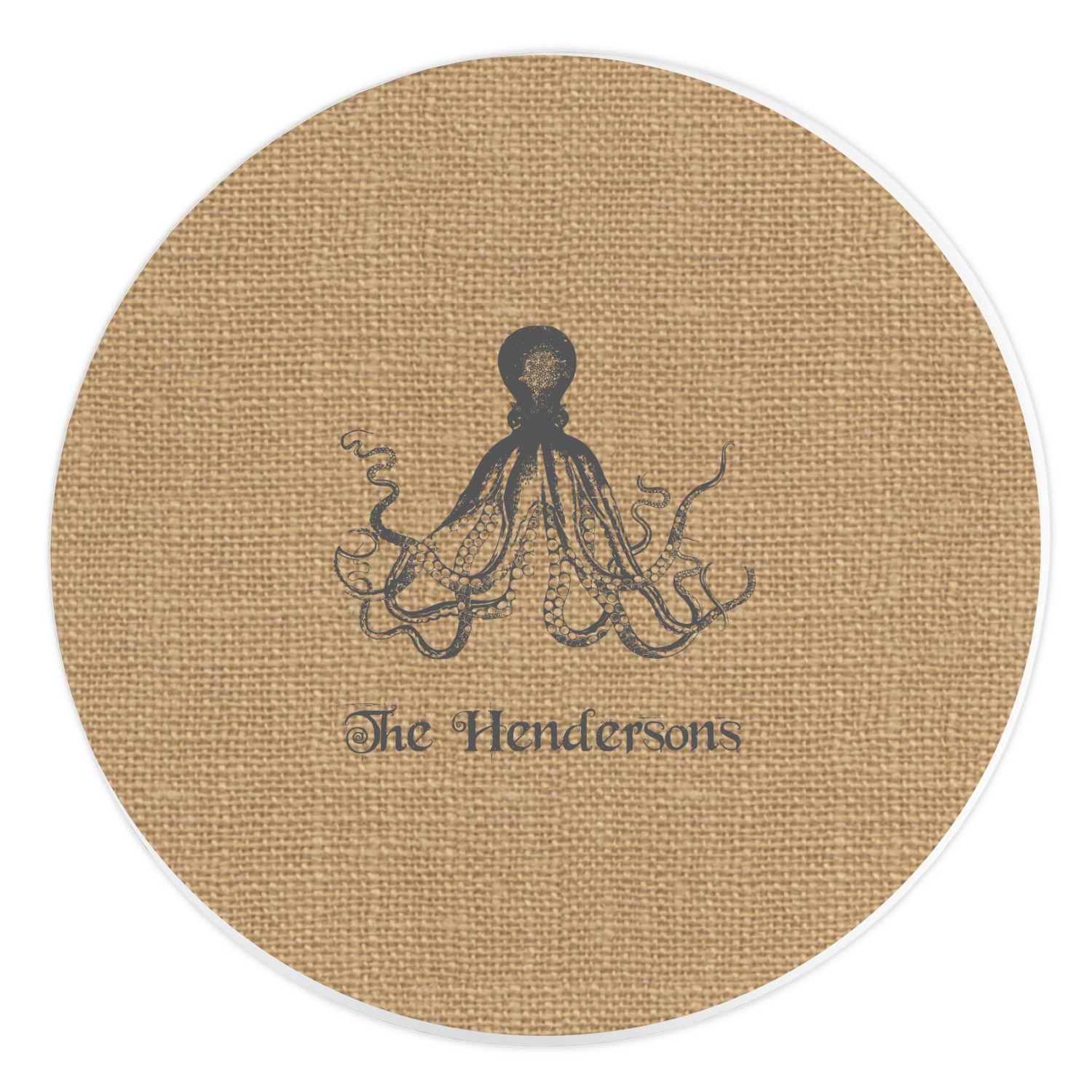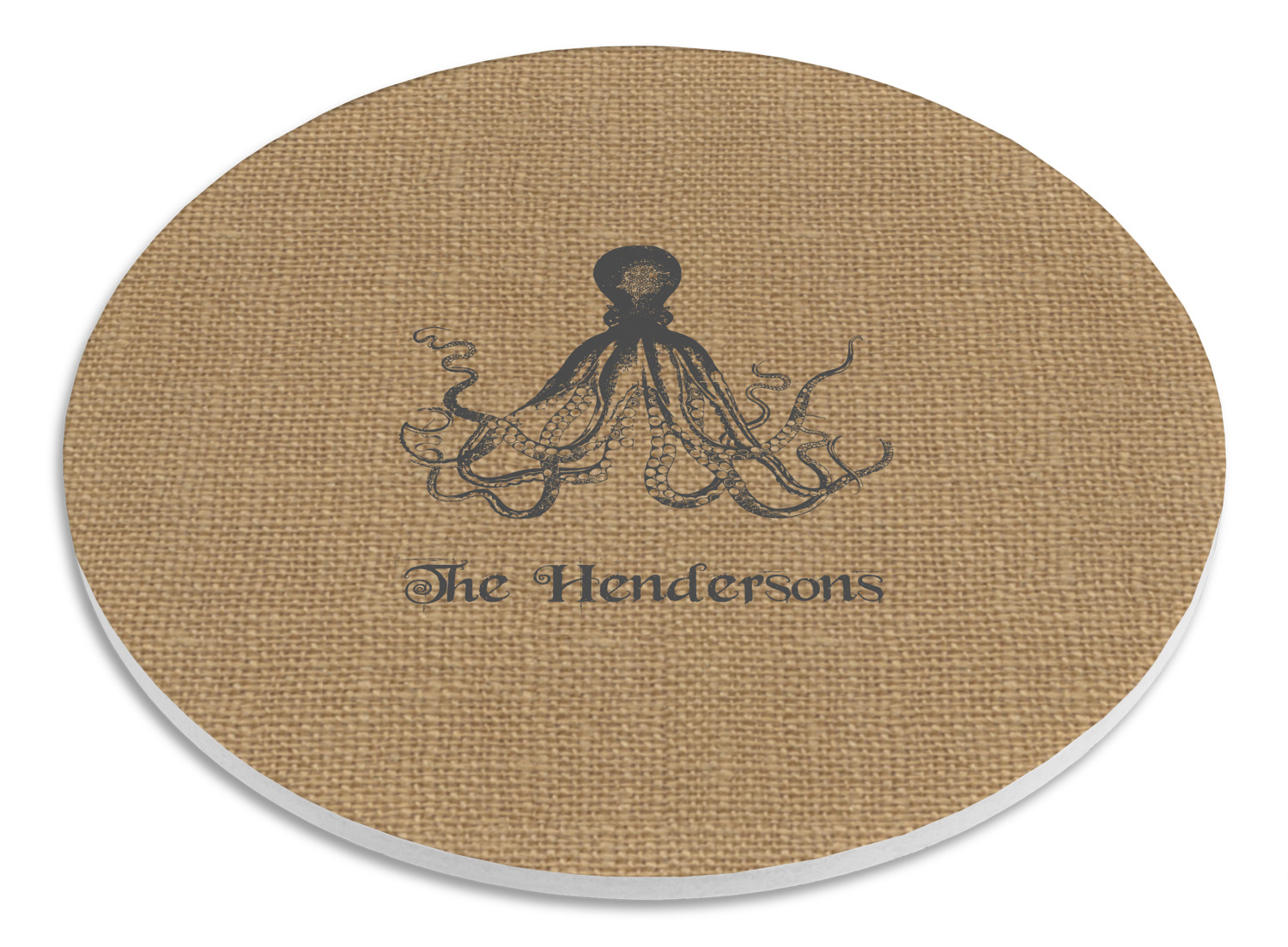 This design has a vintage octopus on burlap. It is a very chic and unusual design. We choose to use the traditional burlap color and the vintage octopus in a dark grey. Not only can you change the color of the burlap and the octopus, you can change the octopus as well. We have many different vintage designs that you can choose from such as sea horses, sea turtles, ships, anchors, compasses etc