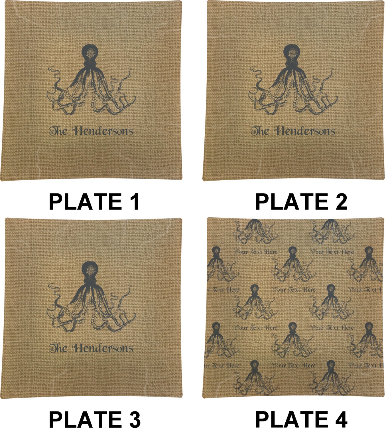 This design has a vintage octopus on burlap. It is a very chic and unusual design. We choose to use the traditional burlap color and the vintage octopus in a dark grey. Not only can you change the color of the burlap and the octopus, you can change the octopus as well. We have many different vintage designs that you can choose from such as sea horses, sea turtles, ships, anchors, compasses etc