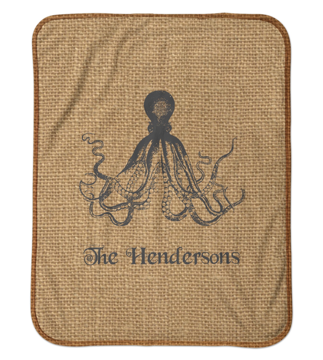 This design has a vintage octopus on burlap. It is a very chic and unusual design. We choose to use the traditional burlap color and the vintage octopus in a dark grey. Not only can you change the color of the burlap and the octopus, you can change the octopus as well. We have many different vintage designs that you can choose from such as sea horses, sea turtles, ships, anchors, compasses etc