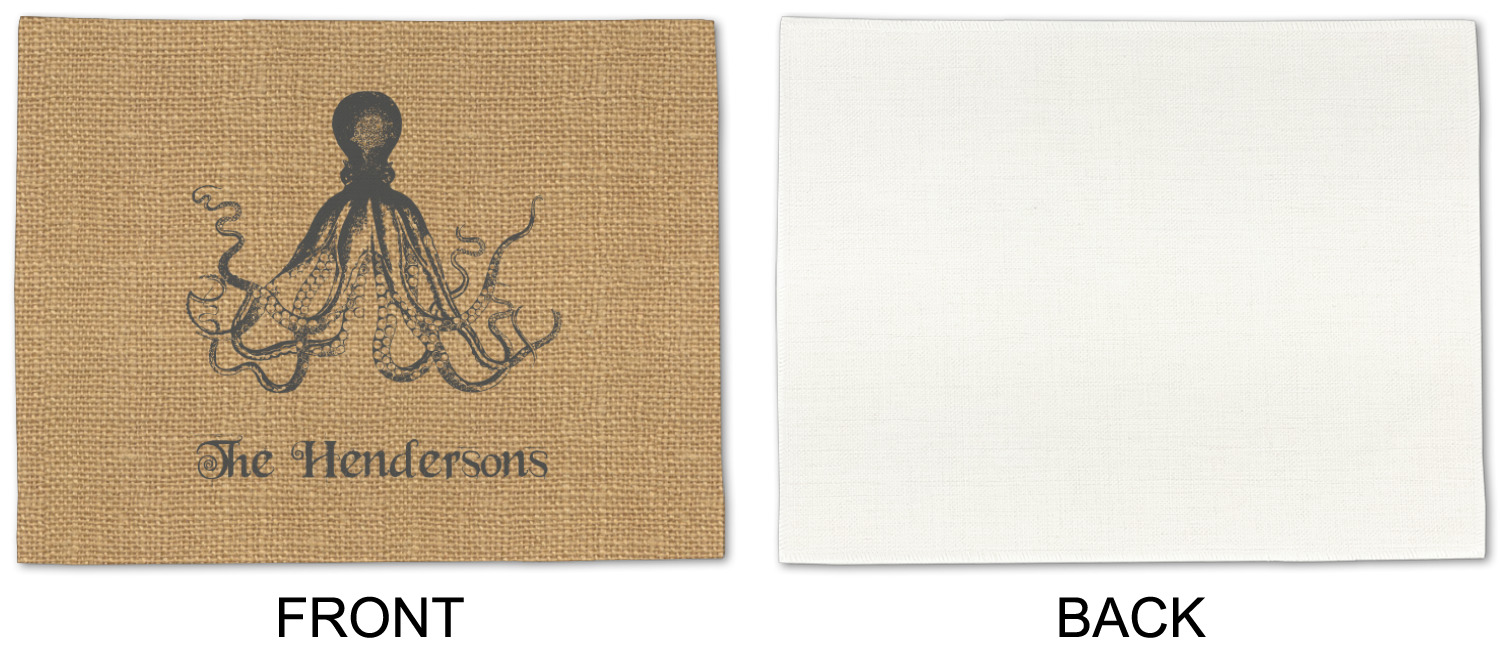 This design has a vintage octopus on burlap. It is a very chic and unusual design. We choose to use the traditional burlap color and the vintage octopus in a dark grey. Not only can you change the color of the burlap and the octopus, you can change the octopus as well. We have many different vintage designs that you can choose from such as sea horses, sea turtles, ships, anchors, compasses etc