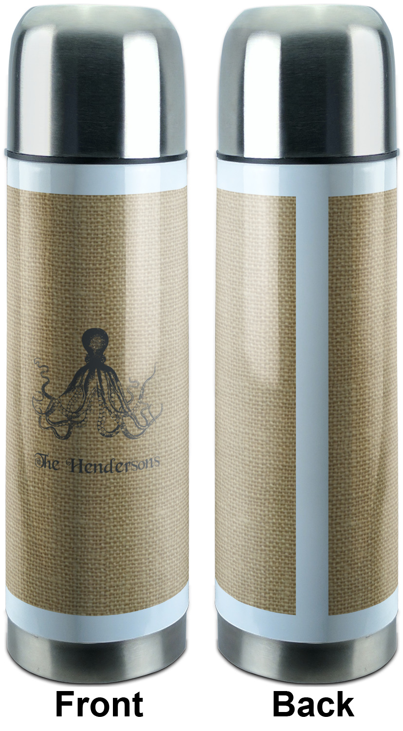 Transport your iced and heated drinks in style with our stainless steel thermos! This effective, custom thermos insulates your beverages for hours, while displaying a creative, personalized design completely of your choice!
