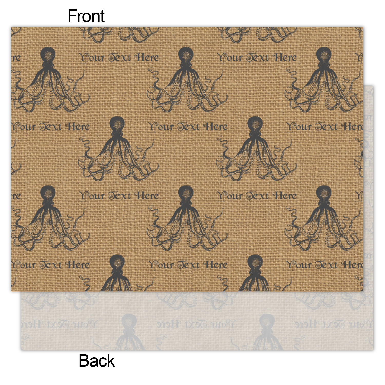 This design has a vintage octopus on burlap. It is a very chic and unusual design. We choose to use the traditional burlap color and the vintage octopus in a dark grey. Not only can you change the color of the burlap and the octopus, you can change the octopus as well. We have many different vintage designs that you can choose from such as sea horses, sea turtles, ships, anchors, compasses etc