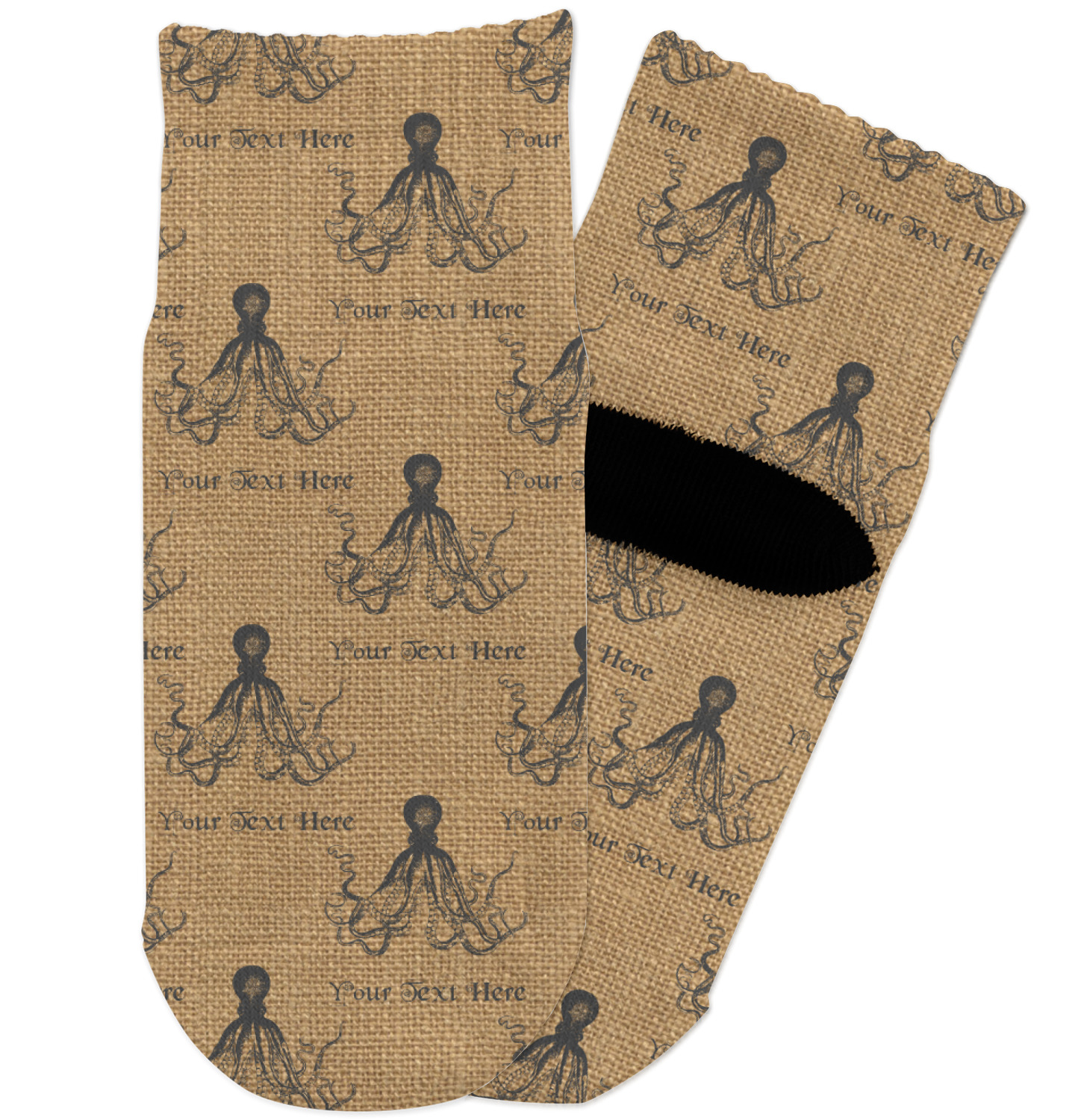 This design has a vintage octopus on burlap. It is a very chic and unusual design. We choose to use the traditional burlap color and the vintage octopus in a dark grey. Not only can you change the color of the burlap and the octopus, you can change the octopus as well. We have many different vintage designs that you can choose from such as sea horses, sea turtles, ships, anchors, compasses etc