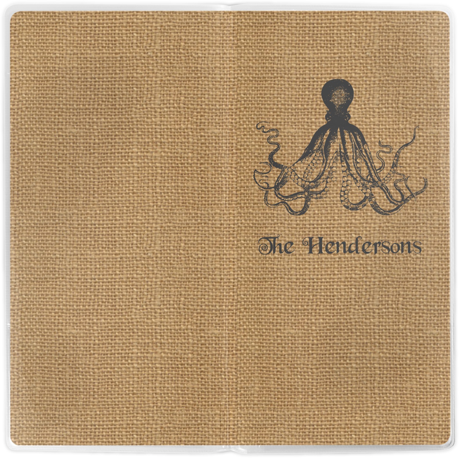 This design has a vintage octopus on burlap. It is a very chic and unusual design. We choose to use the traditional burlap color and the vintage octopus in a dark grey. Not only can you change the color of the burlap and the octopus, you can change the octopus as well. We have many different vintage designs that you can choose from such as sea horses, sea turtles, ships, anchors, compasses etc