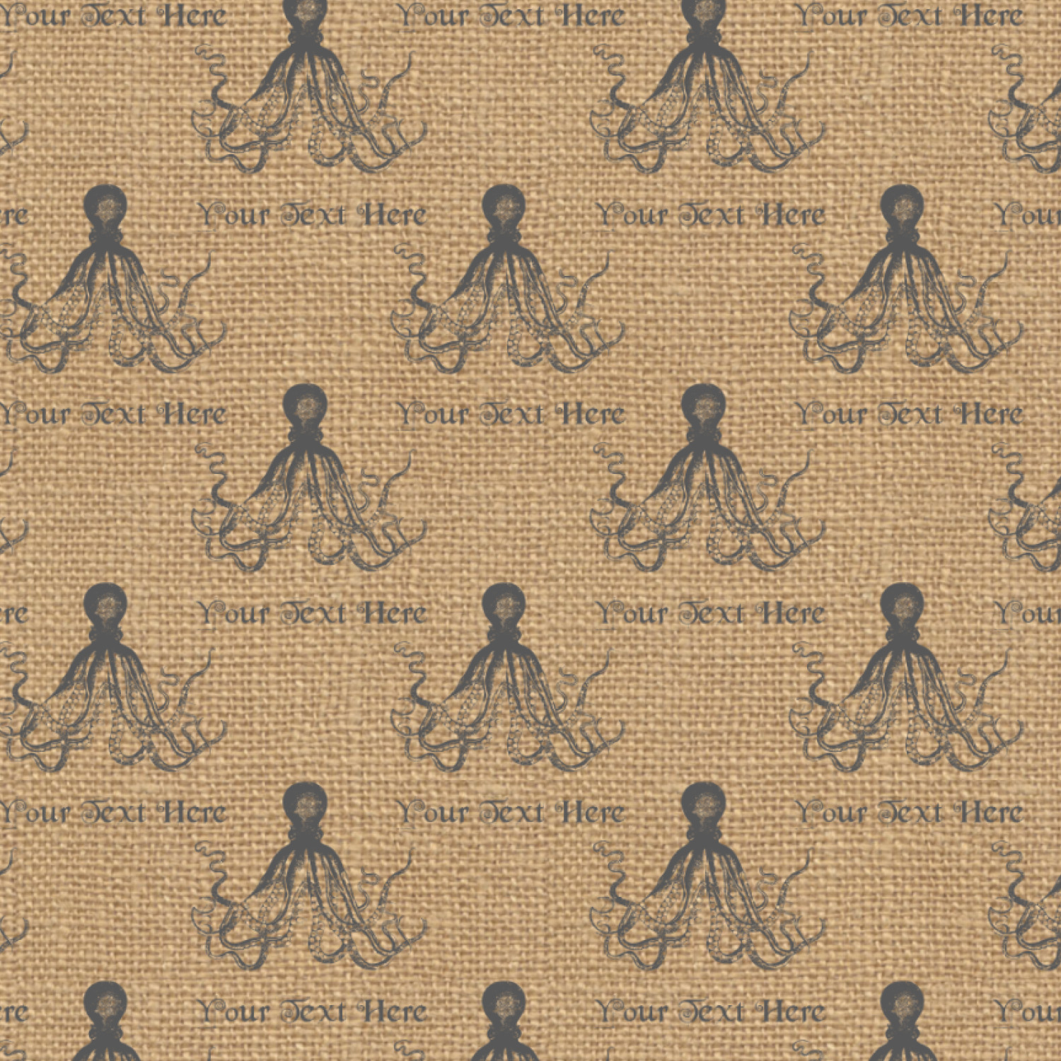 This design has a vintage octopus on burlap. It is a very chic and unusual design. We choose to use the traditional burlap color and the vintage octopus in a dark grey. Not only can you change the color of the burlap and the octopus, you can change the octopus as well. We have many different vintage designs that you can choose from such as sea horses, sea turtles, ships, anchors, compasses etc