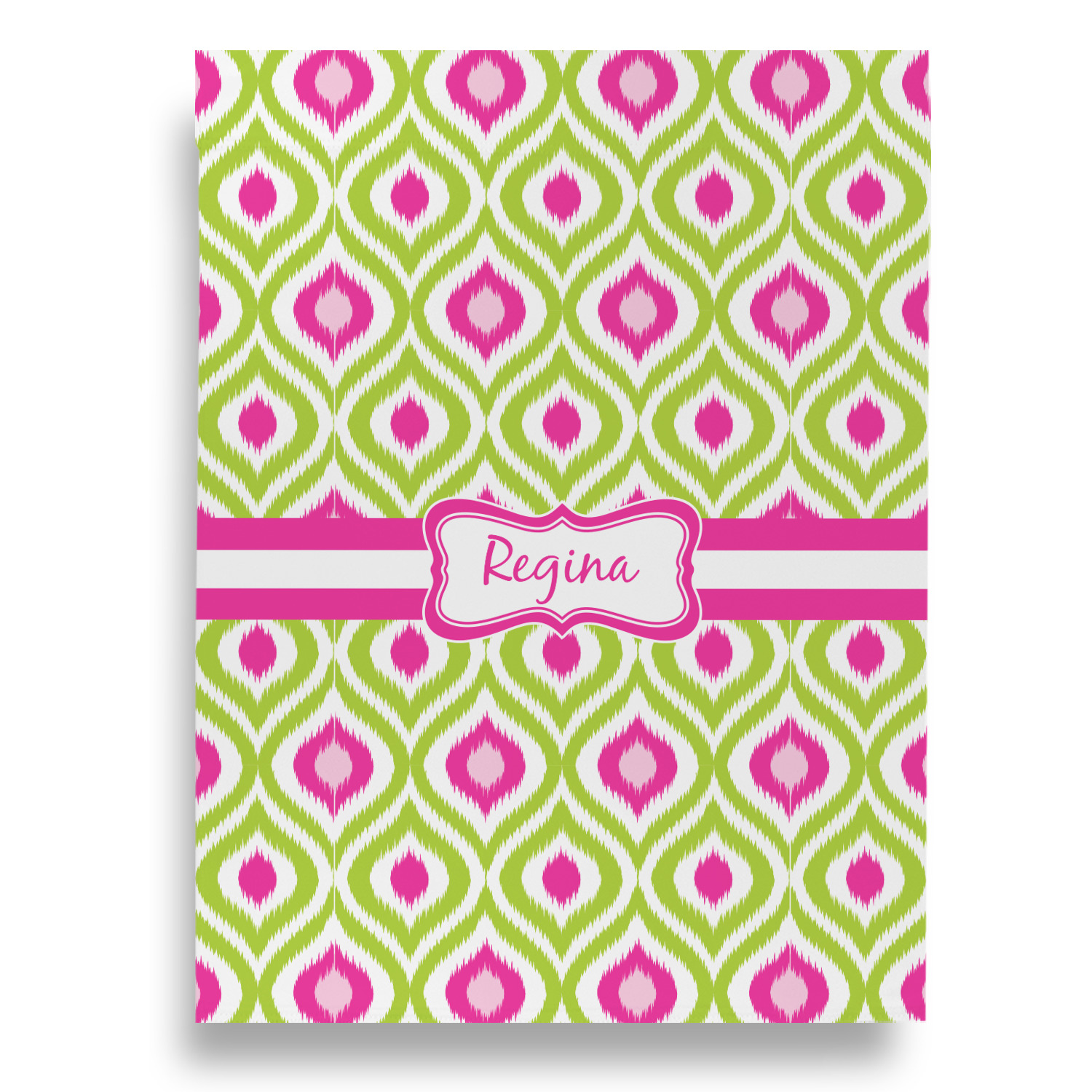 Looking for a girly girl design. The pink and green ikat print with a decorative label is as girly as it gets. We have created this ikat pattern in lime green, orchid pink and hot pink. For all of us girly girls and princesses, this is our absolute favorite!